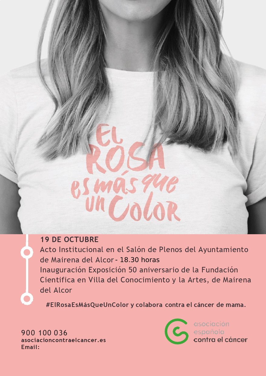 Hoy a las 18.30 horas tendrá lugar un acto institucional #ElRosaEsMásQueUnColor en el ayuntamiento (plaza Antonio Mairena, 1) y en la Villa del Conocimiento y las Artes se procederá a inaugurar la exposición 50 aniversario de la Fundación Científica, que pone el acento los hitos más relevantes que han contribuido a lograr grandes avances en el diagnóstico y tratamiento del cáncer.