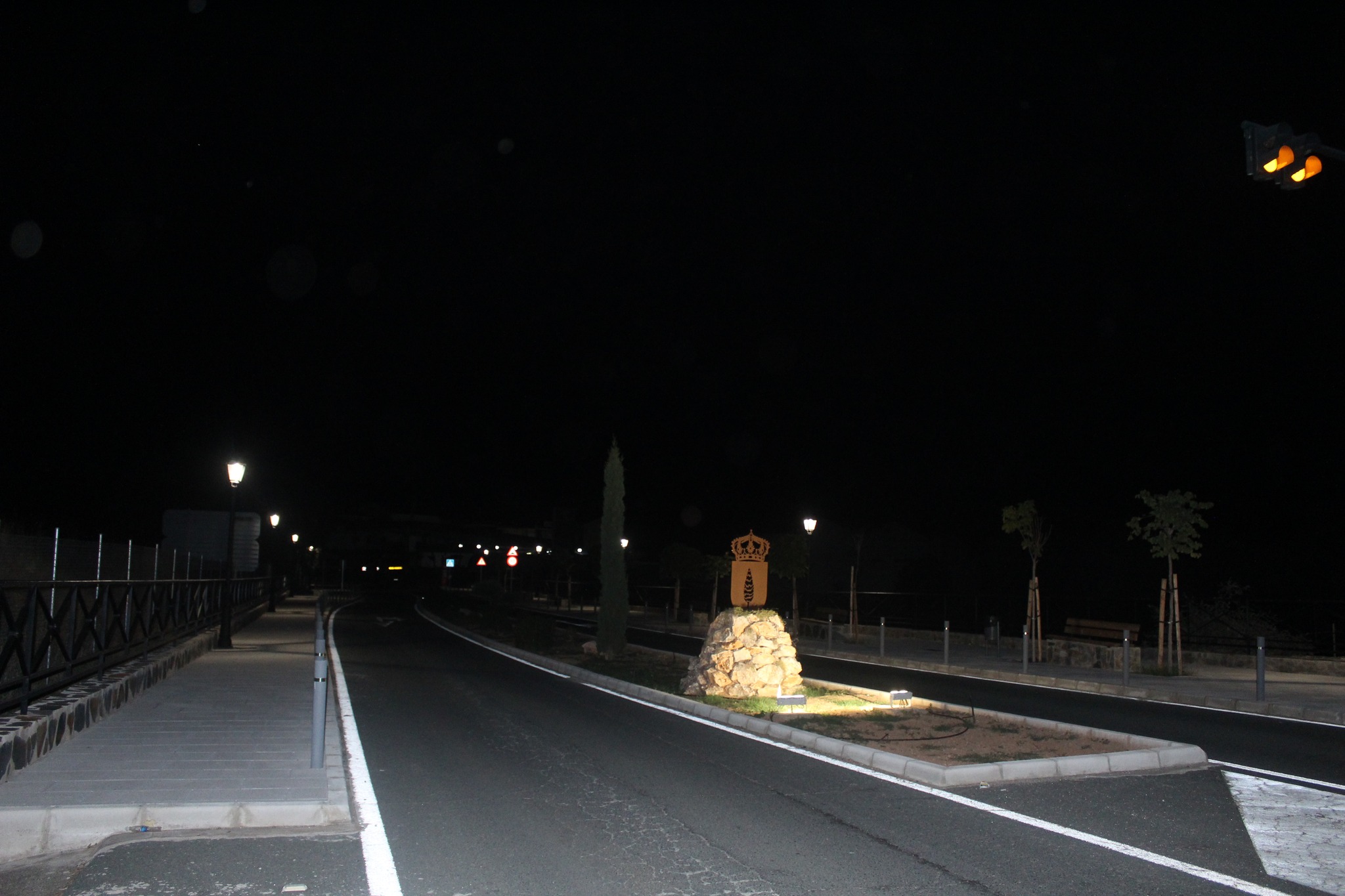 En la zona cebreada de separación de los dos carriles de la calzada, donde se ha creado una gran jardinera con vegetación diversa, ahora también luce un escudo de nuestro municipio, que recibe a vecinos y visitantes a su llegada a nuestro municipio.