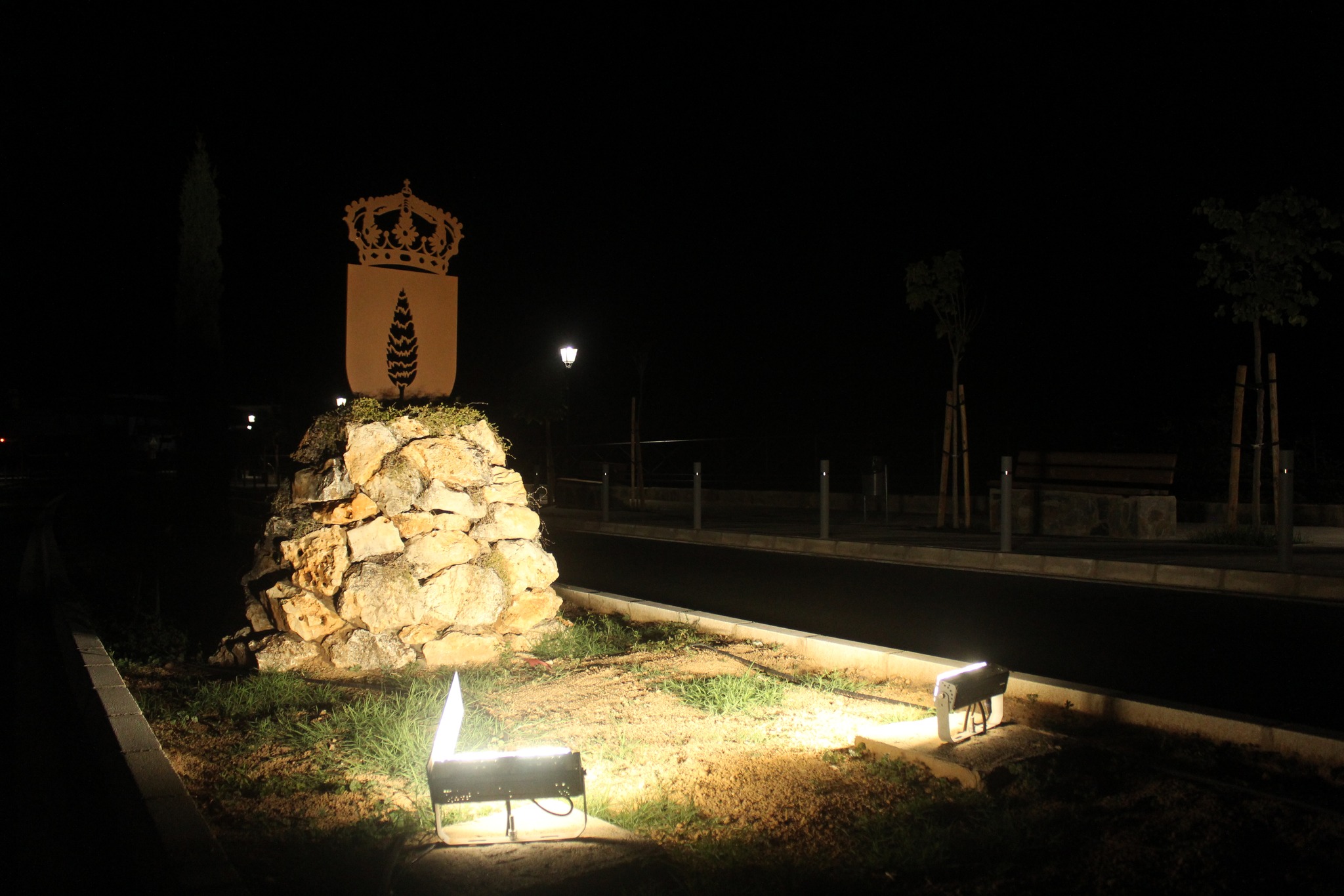 Las actuaciones en el Paseo Peatonal creado recientemente en el acceso sur a nuestro municipio, han finalizado con la colocación del escudo de la localidad sobre piedra decorativa dotado de iluminación.