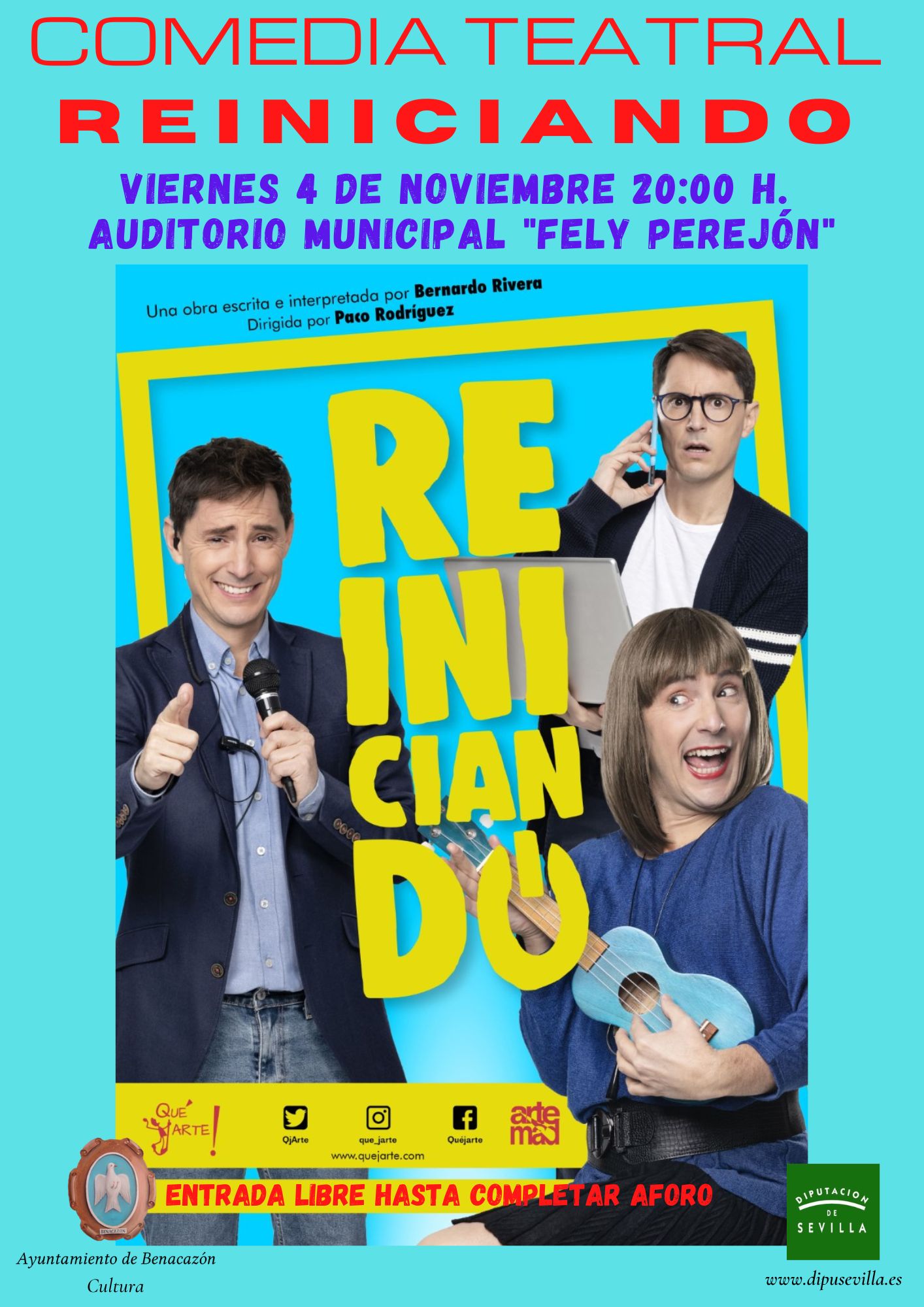 EL Ayuntamiento de Benacazón informa sobre la Programación Teatral del nuevo Auditorio Municipal "Fely Perejón", organizada por la Delegación de Cultura, que se iniciará el primer fin de semana de Noviembre con dos divertidas Comedias de la compañía Qué jArte!. "EL CURSO DE TU VIDA" se representará a través del 'Plan Contigo' de Diputación.