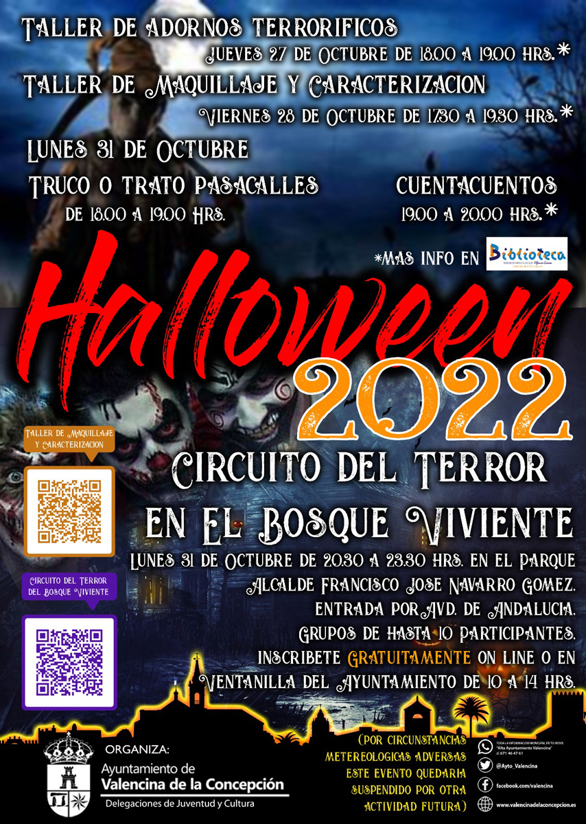 El ayuntamiento de Valencina ha preparado numerosas actividades para le celebración de este Halloween. ¡¡No pierdas la vez y apúntate!!