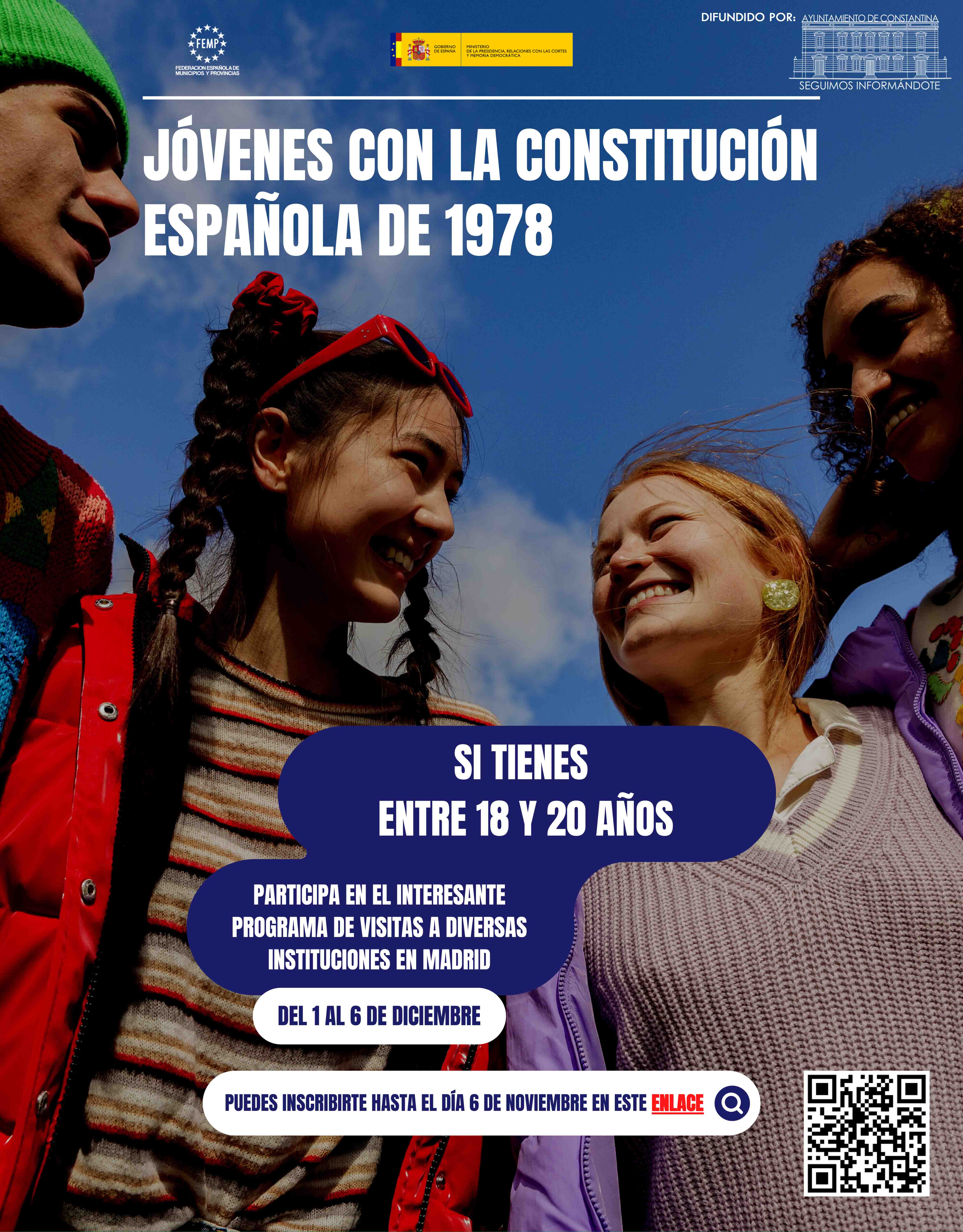 La Secretaría de Estado de Relaciones con las Cortes y Asuntos Constitucionales (Ministerio de la Presidencia, Relaciones con las Cortes y Memoria Democrática) y el Centro de Estudios Políticos y Constitucionales (CEPC), con la colaboración de la FEMP, coincidiendo con las fechas del aniversario de la Constitución, promueven el primer Encuentro Formativo para Jóvenes sobre la Constitución Española de 1978.