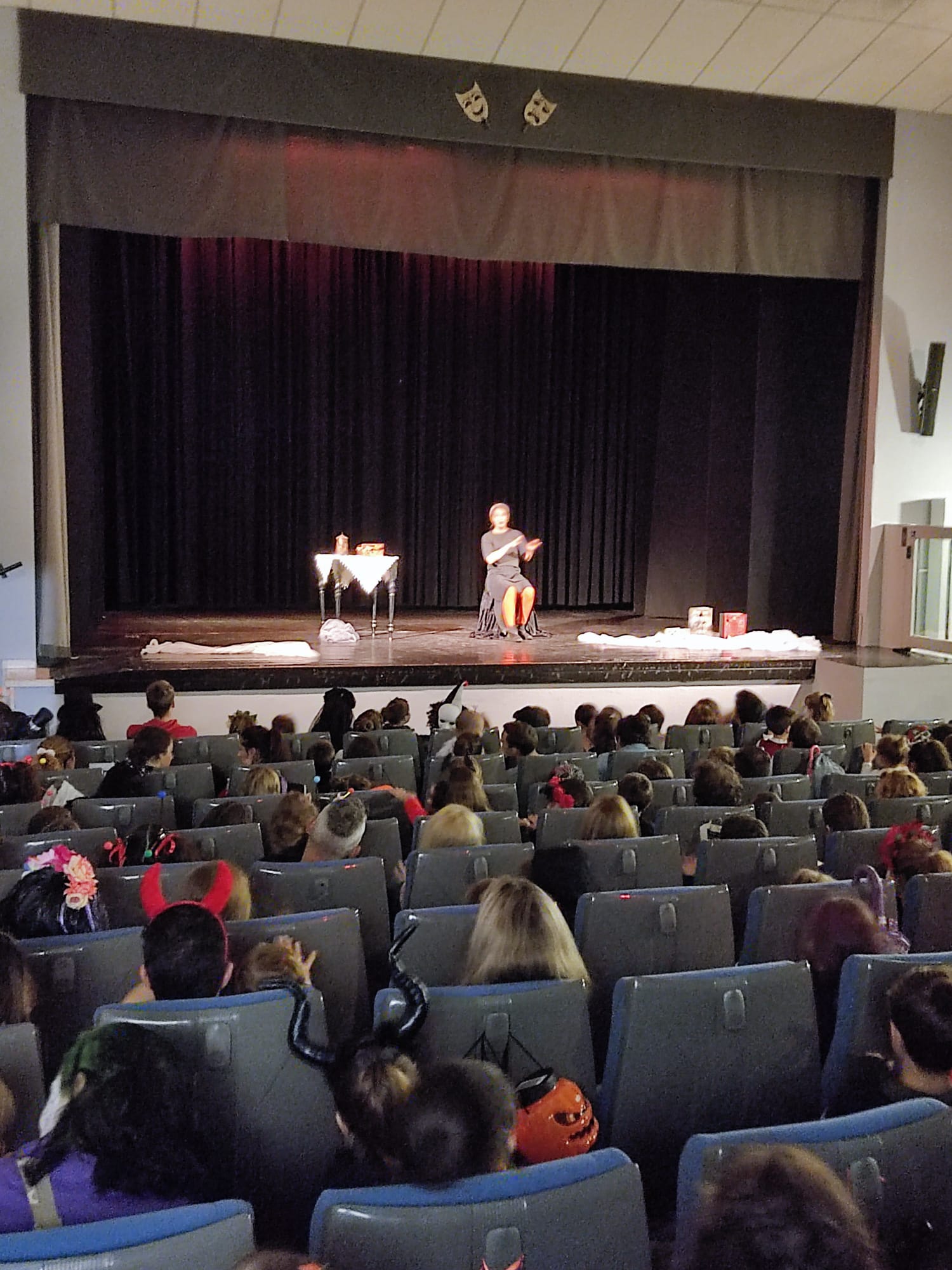 El taller de caracterización de Halloween que se preparó desde la Biblioteca tuvo una magnífica acogida con un lleno completo. En este taller se dio rienda suelta a la imaginación y a la creatividad de los asistentes con la creación de unas caracterizaciones dignas de cualquier película de miedo, no te pierdas las fotos de las caras sanguinolentas, cicatrices y aspecto fantasmal que llevaron a cabo. El cuentacuentos de Halloween que se preparó también desde la Biblioteca y que se desarrolló en el Salón de Actos para público familiar tuvo una magnífica acogida con un lleno completo.