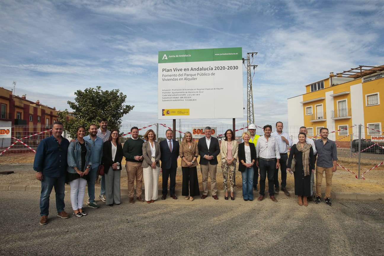 La consejera de Fomento, Articulación del Territorio y Vivienda, Marifrán Carazo, ha acudido junto al alcalde de Mairena del Alcor, Juan Manuel López, al comienzo de las obras de construcción de 34 viviendas en régimen de alquiler a precio asequible en el barrio de la Cebonera, una de las zonas de expansión del municipio. Esta promoción ha recibido una subvención de 1,2 millones de euros procedentes de una de las convocatorias del programa de Fomento del Parque de Vivienda en Alquiler de la Junta de Andalucía para su construcción, con un coste de tres millones de euros.
