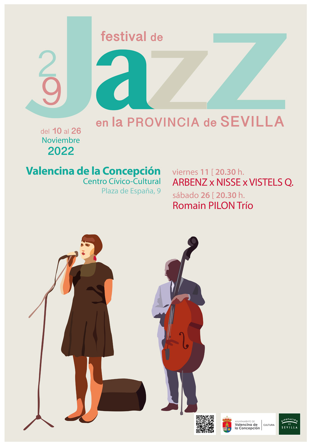 El ayuntamiento de Valencina de la Concepción en colaboración con la delegación de cultura ha preparado un mes cultural de noviembre dedicado al Jazz. Durante este mes tendrán lugar varias iniciativas entre las que se encuentran dos conciertos que se celebrarán en Cento-Cívico Cultural en la Plaza de España( el 11 y el 26 de noviembre respectivamente) y una exposición temporal que durará desde el día 8 al 21 de noviembre en la Casa de la Cultura.