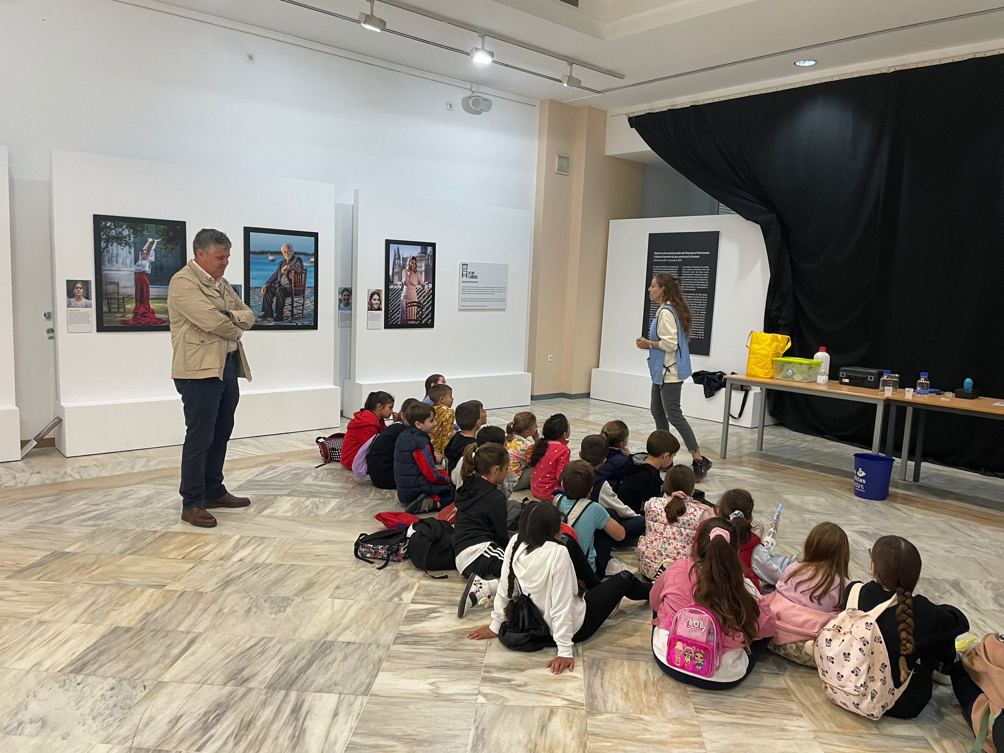El alcalde de Mairena del Alcor, Juanma López, ha participado hoy en los talleres de concienciación medioambiental que Emsesa está impartiendo a 150 escolares de 3º y 4º curso de Primaria de los colegios Isabel Esquivel y Manuel Romero Arregui en la Villa del Conocimiento y las Artes, en el contexto de la campaña Objetivo 90, cuyo fin es lograr reducir el consumo de agua a 90 litros por persona y día. Además de los talleres, los menores han disfrutado del teatro de títeres 'El gran atasco' que acerca la problemática que supone arrojar toallitas y restos higiénicos al inodoro.