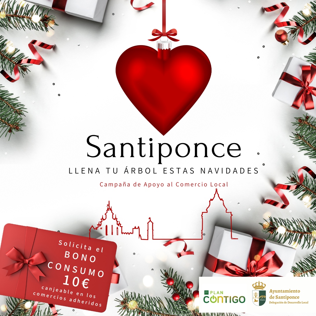 Es por ello que solicitando tu #BonoConsumo de 10€ podrás canjearlo en cualquier comercio adherido a la campaña y así llenar tu árbol de #Santiponce.