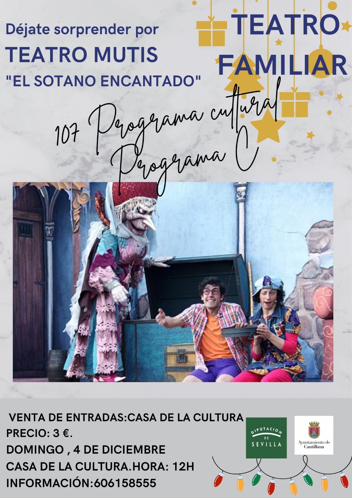 La Casa de la Cultura de Cantillana pone en escena este domingo 4 de diciembre, a las 12:00, la obra de teatro El Sótano Encantado, de la compañía Mutis Producciones.