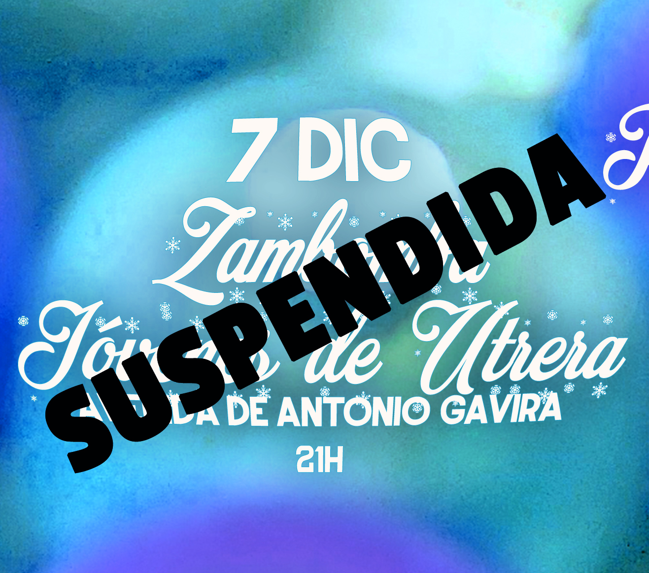 La zambomba 'Jóvenes de Utrera' prevista para esta noche en la avenida de Antonio Gavira, en el barrio de El Prior, se suspende debido a la previsión de lluvias y mal tiempo.