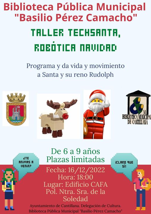 Con esta actividad, organizada con la colaboración de la delegación de Cultura del Ayuntemiento de Cantillana, los niños podrán adentrarse al mundo de la robótica y la programación a través de la experimentación en un ambiente navideño. Todos los materiales necesarios serán suministrados por la biblioteca el día de realización del taller.