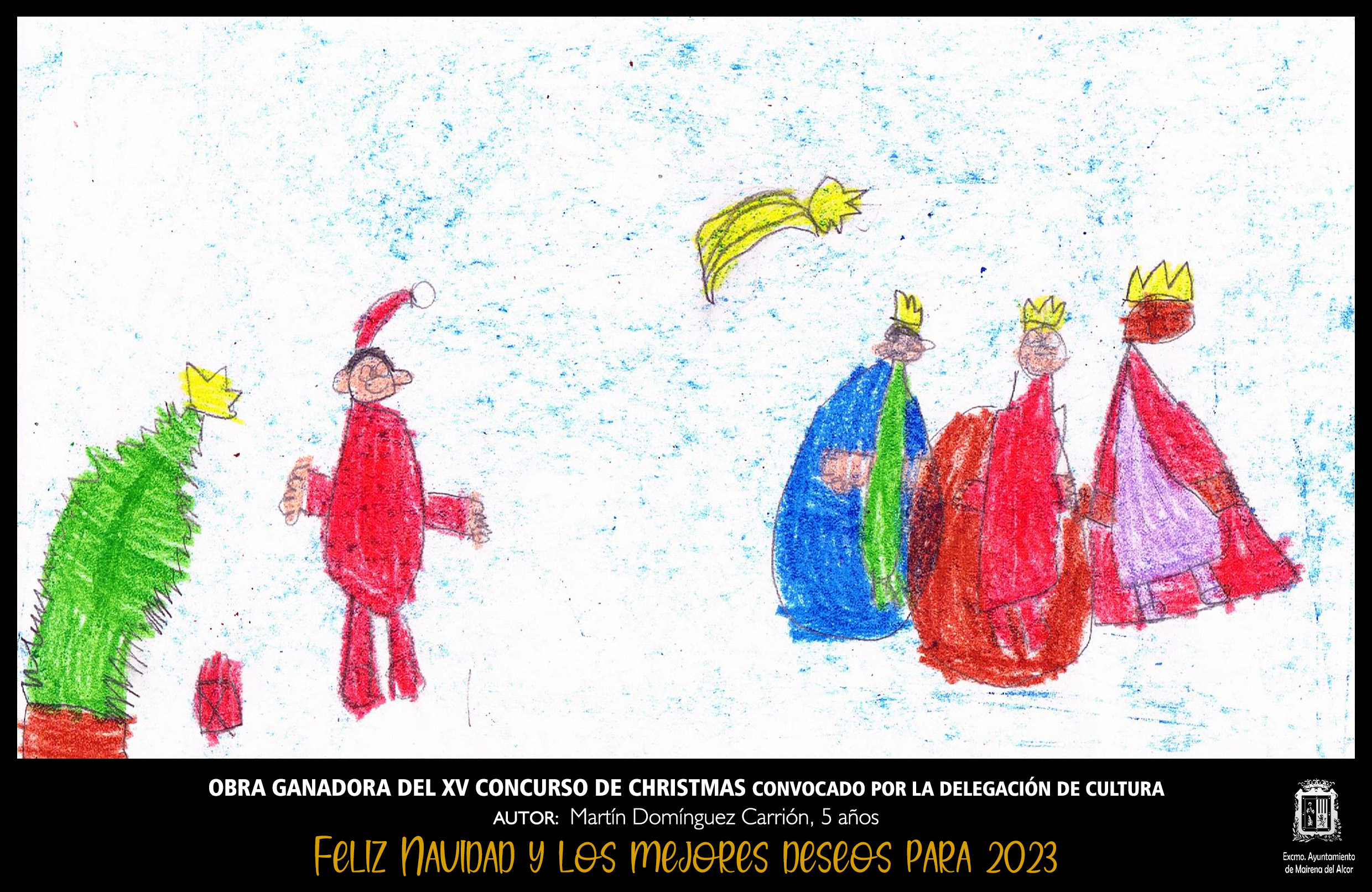 El jurado del XV Concurso de Christmas ha seleccionado el dibujo ganador, convocado por la Delegación de Cultura en el contexto de la programación de Navidad. Es obra de Martín Domínguez Carrión, de 5 años de edad. Recibirá como premio un lote de libros valorado en 50 euros.