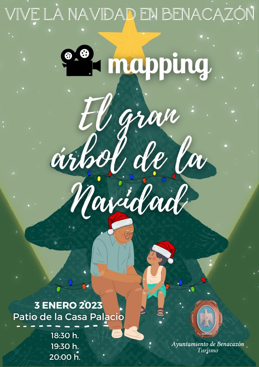 El Ayuntamiento de Benacazón informa que estas Navidades tendremos por primera vez en el municipio un MAPPING con la temática "EL GRAN ÁRBOL DE LA NAVIDAD", organizado por la Delegación municipal de Turismo dentro de la Programación "VIVE LA NAVIDAD EN BENACAZÓN"