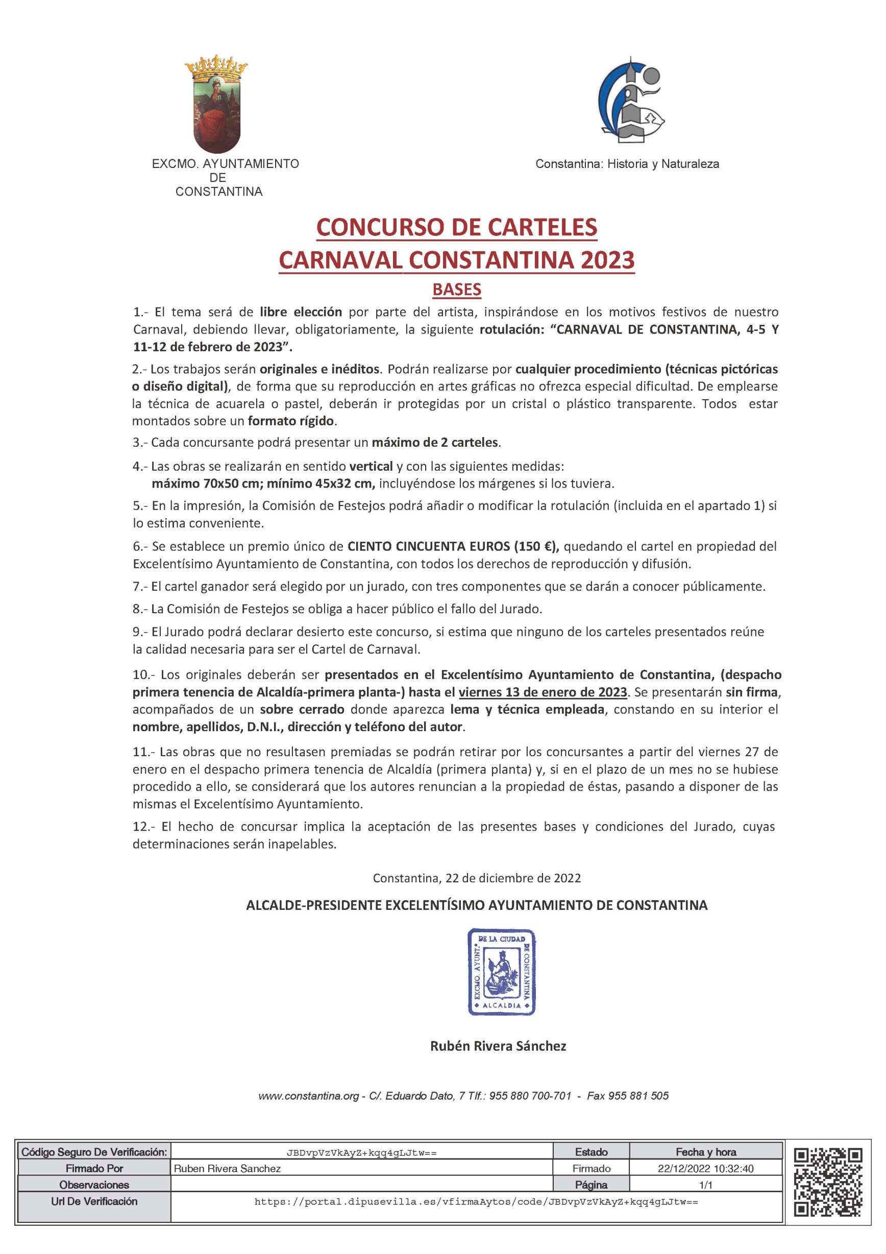 Se abre el plazo de presentación de trabajos para participar en el Concurso del Cartel de "Carnaval 2023" de Constantina, se admitirán hasta el viernes 13 de enero.