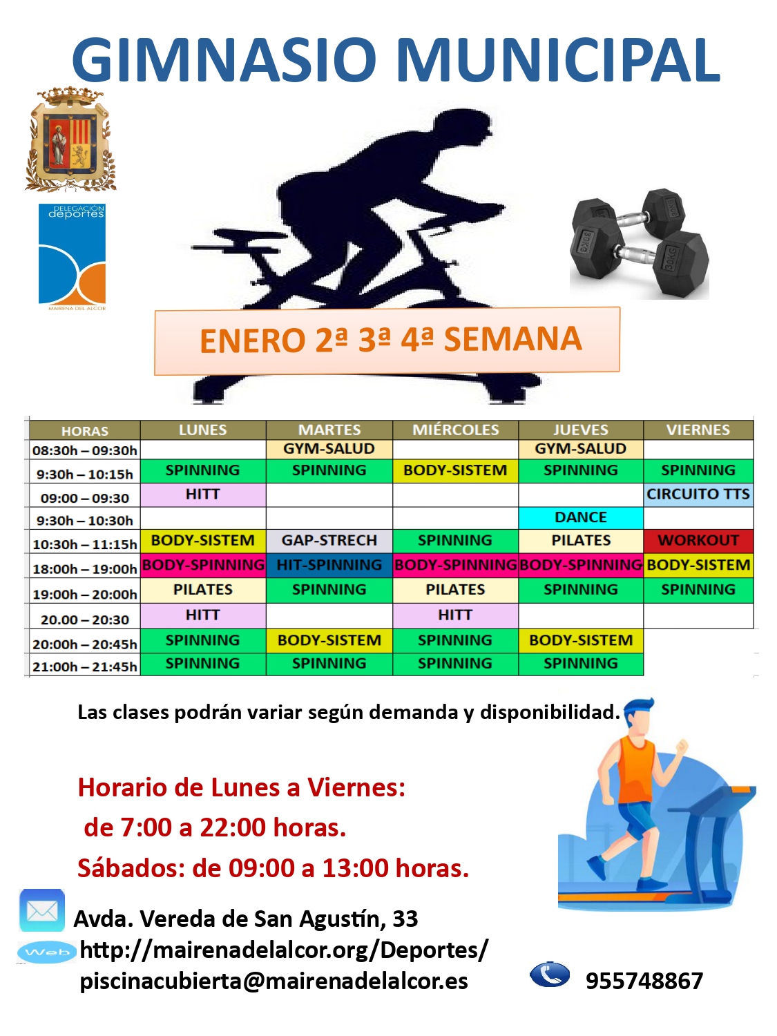 Imagen Imágenes Ubicación Categoría noticia Deportes Mostrar en el carrusel de la sección No Fecha Jue, 05/01/2023 - 12:14 Más información http://www.mairenadelalcor.es/es/actualidad/noticias/Enero-en-el-gimnasio-munic…