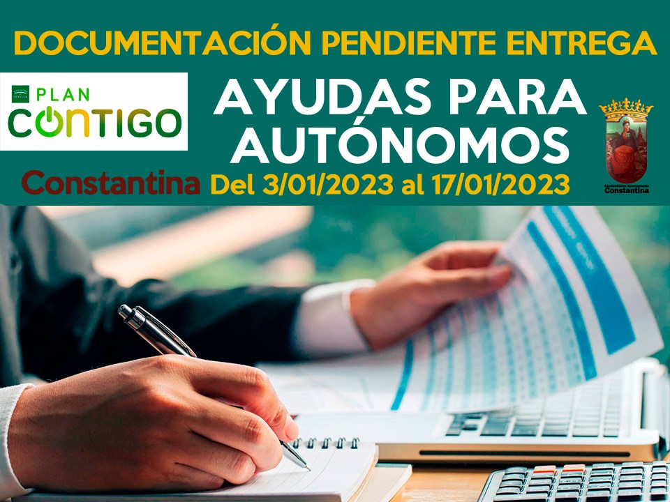 La Oficina del Plan Contigo del Ayuntamiento de Constantina RECUERDA a las EMPRESAS BENEFICIARIAS de la convocatoria pública de subvenciones ayudas a trabajadores autónomos de Constantina del Plan Contigo de la Diputación de Sevilla que, para la justificación de dichas ayudas deben presentar (de forma telemática a través de la Sede Electrónica de este Ayuntamiento o personalmente en el Registro General) hasta el martes 17 de enero de 2023 la siguiente documentación:
