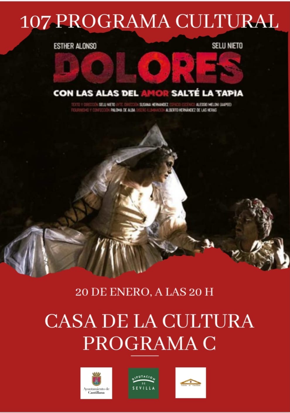 Escrita y dirigida por Selu Nieto, esta comedia para personas adultas tiene una duración de 65 minutos y el precio de la entrada es de 3€, que se puede reservar en cultura@cantillana.es o por WhatsApp en el 605 158 555.