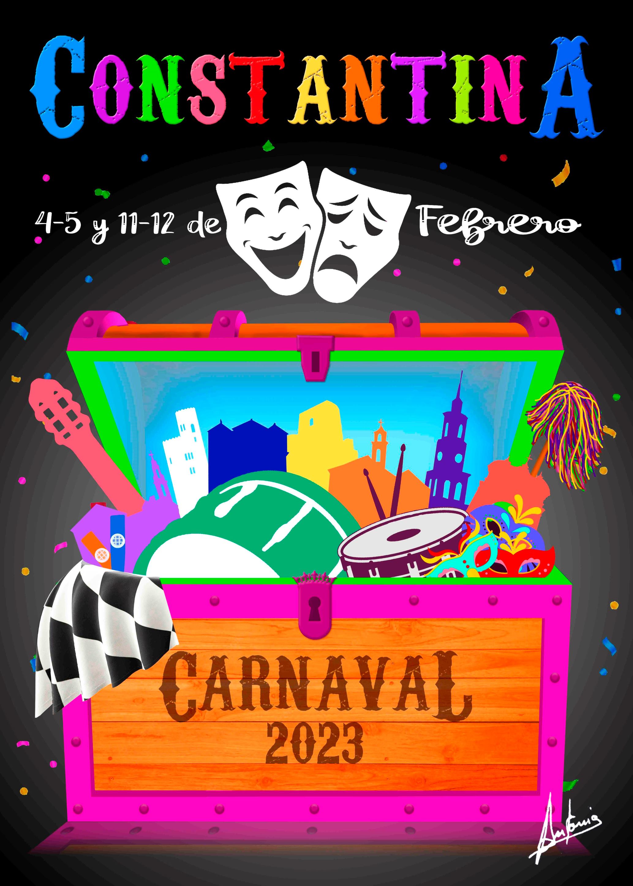 Se proclamó vencedor Antonio Navarro Lara con su obra digital "EL BAÚL DE FEBRERO", haciéndose con un único premio establecido valorado en 150 euros y quedando el cartel en propiedad del Ayuntamiento, con todos los derechos de difusión y reproducción. La obra, que en el proceso de elección figuraba como número 2 y obtuvo un total de 10 puntos, representa un baúl abierto que contiene objetos propios del carnaval mezclados con las siluetas de los monumentos más emblemáticos de Constantina, como guiño también, el cierre del baúl es el escudo de la localidad. A la obra original, por recomendación del jurado y aceptación de la Comisión de Festejos, se le ha modificado la rotulación de la palabra Constantina por considerarla poco legible (contemplado en el punto 5 de las bases del concurso).