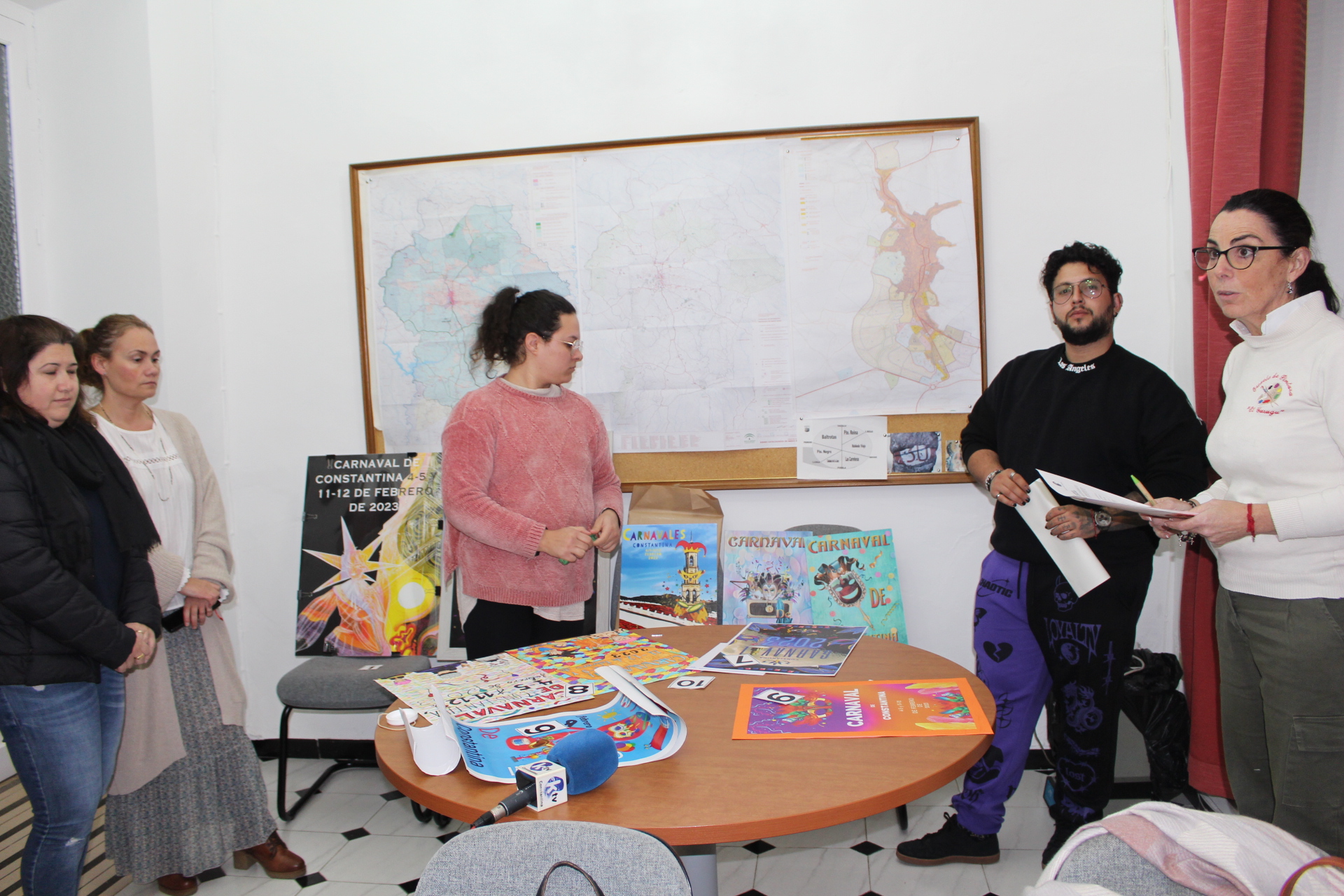 El pasado lunes 16 de enero, el Ayuntamiento acogió la elección cartel de "Carnaval 2023" de Constantina. Organizado por el Ayuntamiento de Constantina, se presentaron a concurso un total de diez obras, de las que, lamentablemente, 8 tuvieron que ser descalificadas por el jurado, antes de la votación, unas por no cumplir el requisito contemplado en las bases de presentar la obra sobre un formato rígido y otras por no respetar el tamaño mínimo exigido.