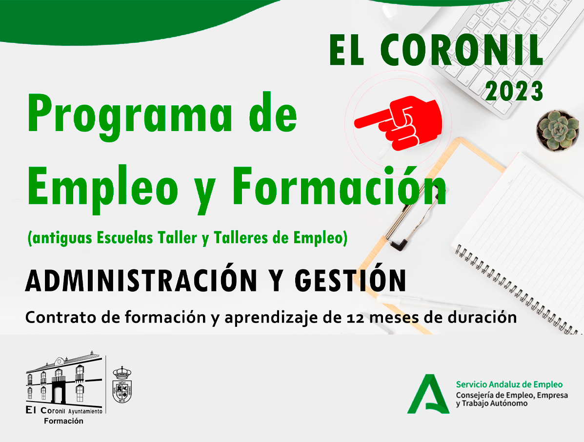 El plan formativo aprobado para El Coronil comienza con (ADGG0508) OPERACIONES DE GRABACIÓN Y TRATAMIENTO DE DATOS Y DOCUMENTOS (Nivel 1) y continúa con (ADGG0208) ACTIVIDADES ADMINISTRATIVAS EN LA RELACIÓN CON EL CLIENTE (Nivel 2), ambos de la misma familia y área profesional.