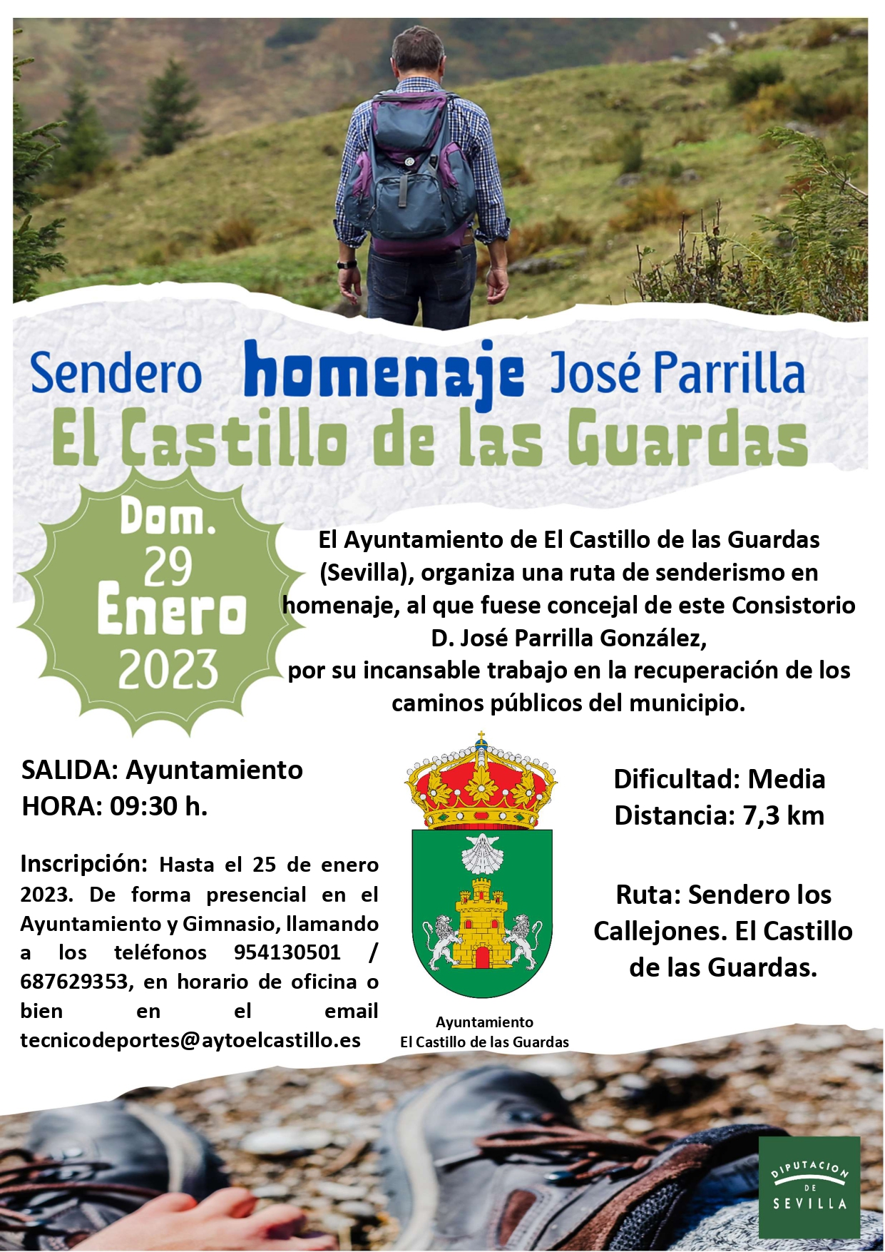 Celebración del tradicional sendero homenaje al que fuese concejal de este Ayuntamiento, D. José Parrilla, en reconocimiento por su incansable lucha por recuperar los caminos públicos de nuestro municipio. En esta ocasión tras el acto de ofrenda florar en el Cementerio, saldremos a las 09:30 h. desde la puerta del Ayuntamiento y realizaremos el sendero de "los callejones", donde disfrutaremos de bellas estampas.