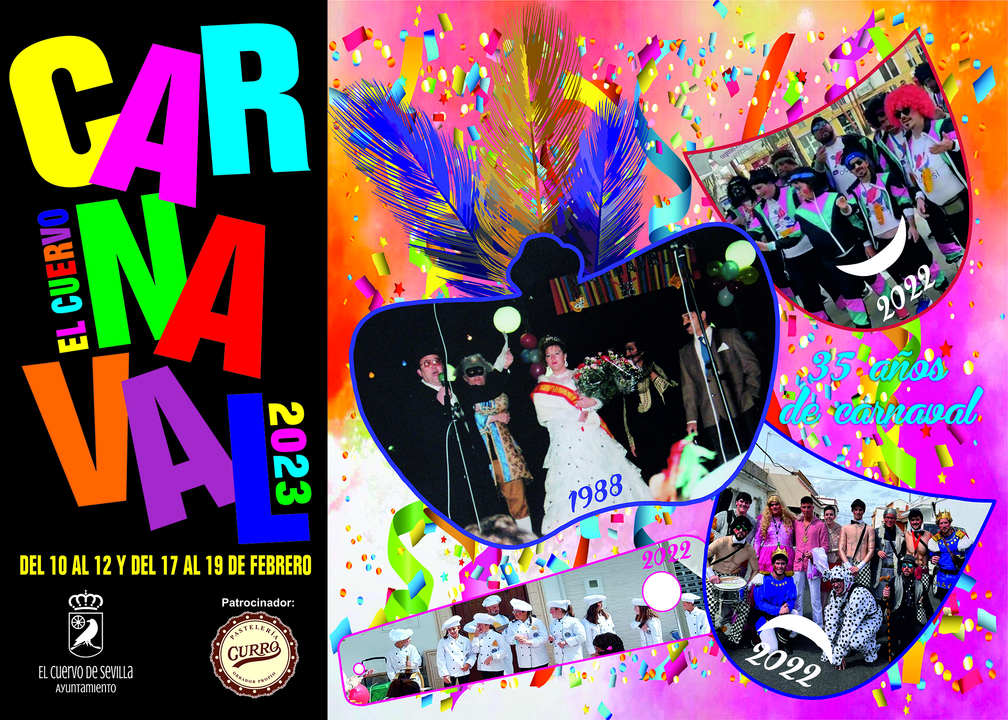 El delegado de Fiestas, Francisco Cordero ha presentado el cartel anunciador del Carnaval 2023. Un cartel elaborado por el técnico municipal de Fiestas y que representa el primer pregón de 1988 y por momentos vividos en el carnaval del 2022. Un cartel que cuenta con el patrocinio de Café-Pastelería Curro.