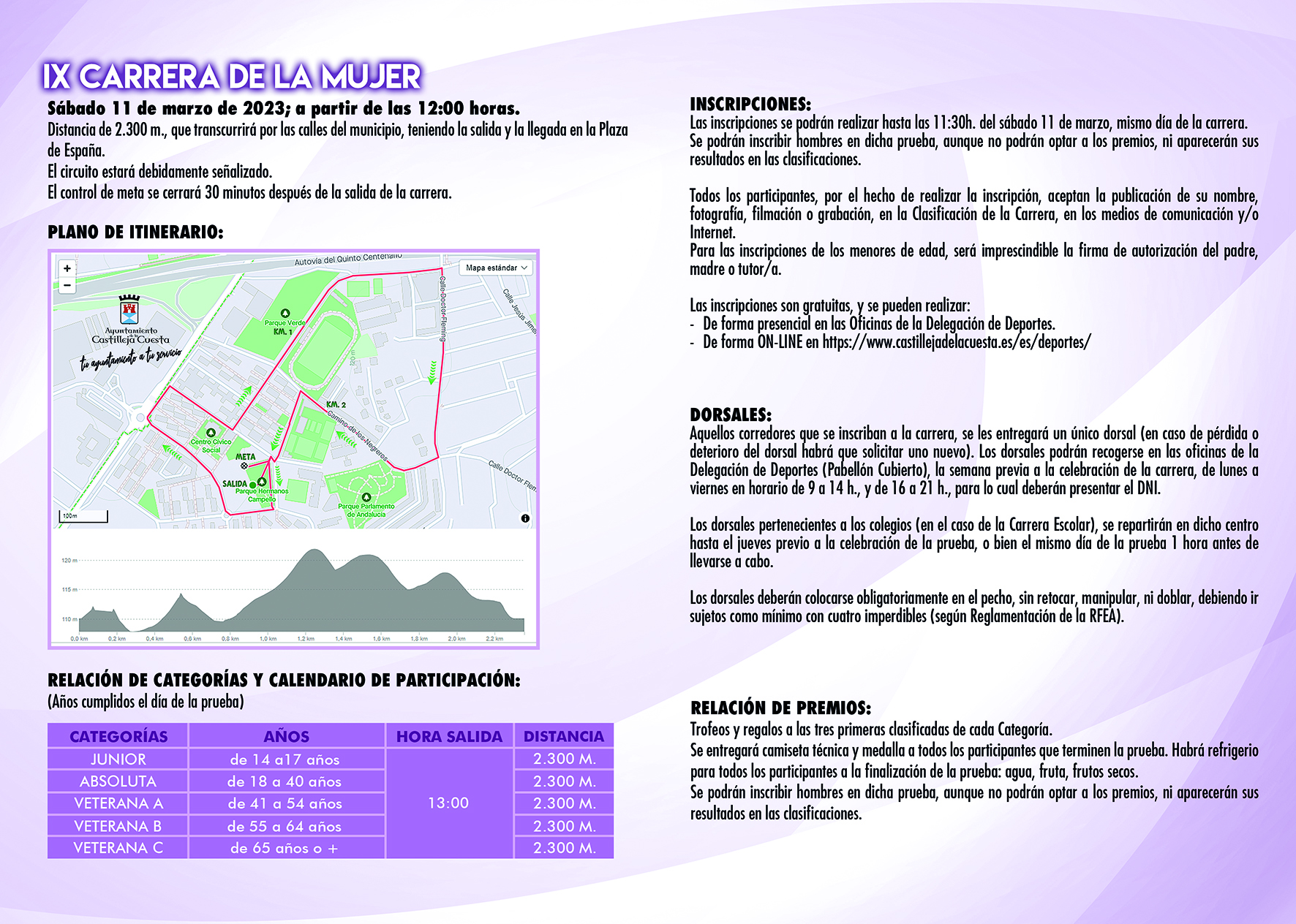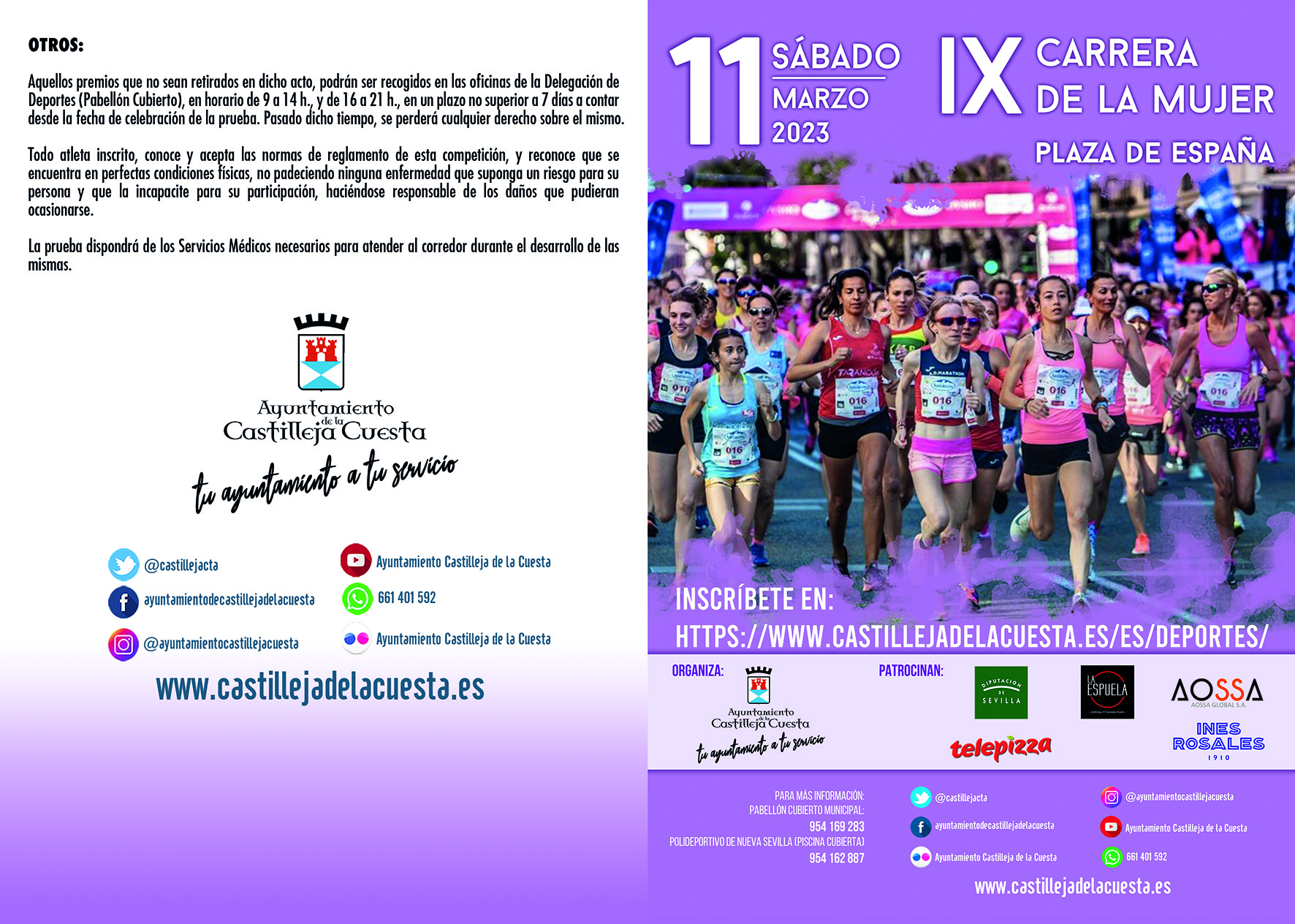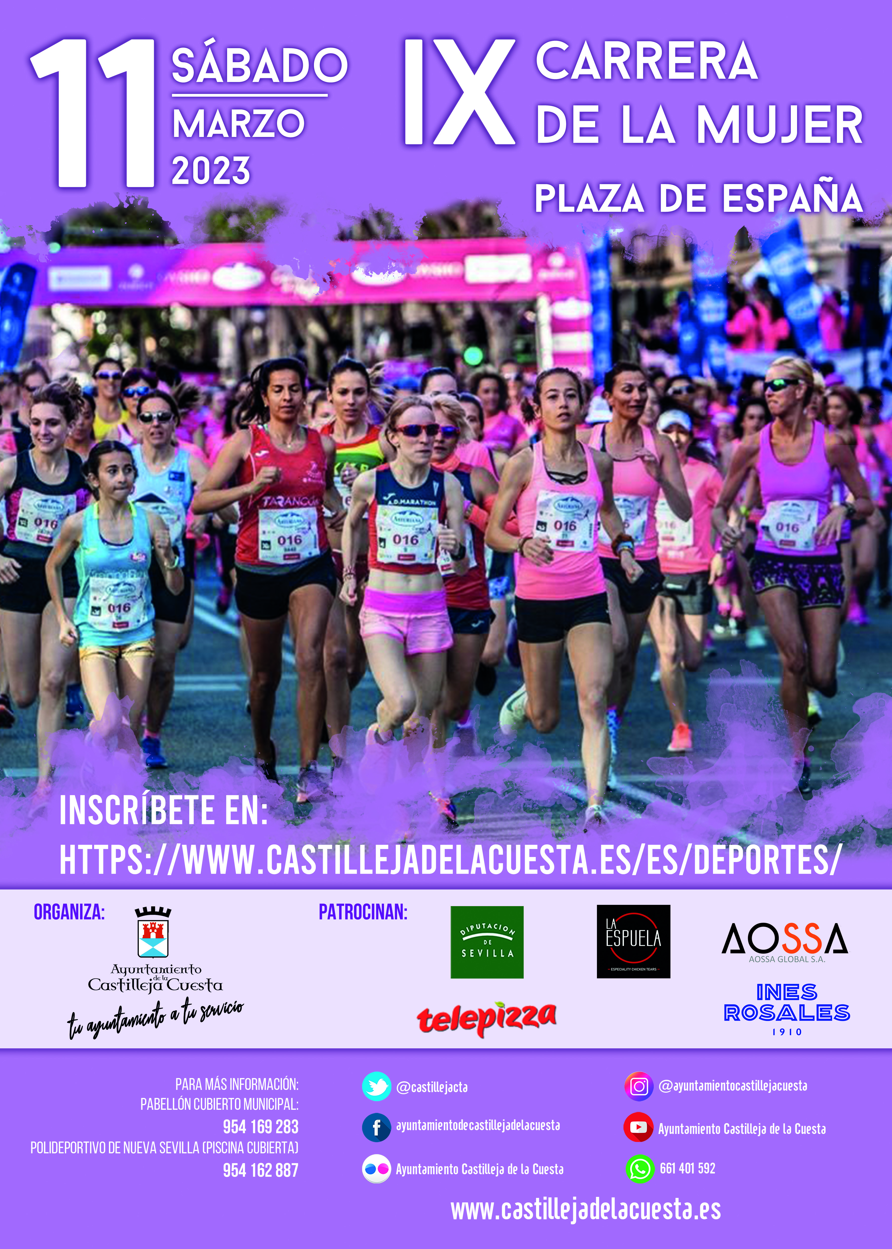 Inscripciones para la IX Carrera de la Mujer: https://castillejadelacuesta.es/es/deportes/carrera-mujer/