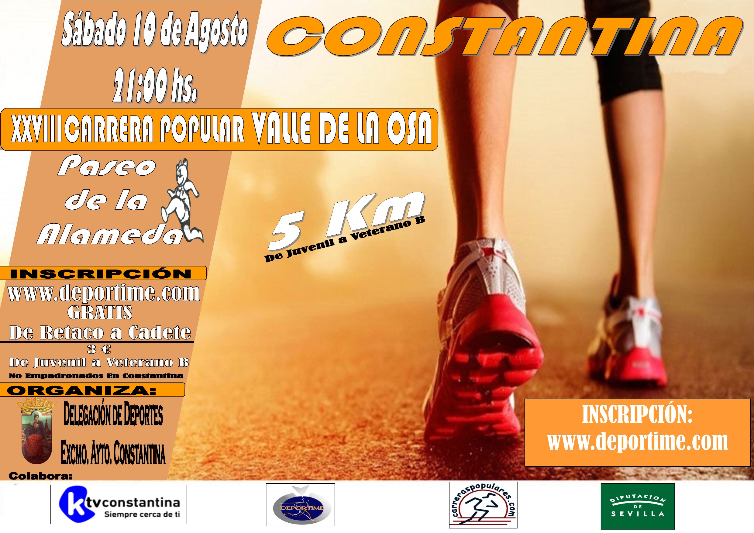 La Delegación Municipal de Deportes del Excelentísimo Ayuntamiento de Constantina trabaja en los preparativos para uno de los eventos deportivos que congrega más público en nuestra localidad: la Carrera Popular Valle de la Osa, que este año alcanza su XXVIII edición y se disputará el sábado 10 de agosto a las 21:00 horas en el Paseo de la Alameda.