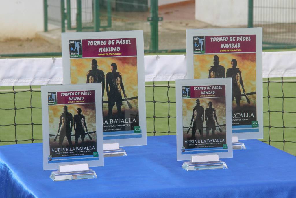 Mercedes Campos , concejal de Deportes del Ayuntamiento de Constantina, hacía entrega a la finalización del encuentro de los trofeos a los campeones y subcampeones que habían disputado una reñida final en la que los favoritos hicieron valer su condición. Con más trabajo de lo esperado los vigentes campeones del torneo navideño se alzaban con la victoria ante unos rivales que habían disputado un torneo de menos a más, aunque es cierto que en momentos decisivos de esta final acusaron su falta de experiencia. El primer set se decidió por un apretado 6-4, habiéndose llegado previamnete a un igualado empate a cuatro. Se vieron puntos de gran intensidad, con buenos ataques y defensas por parte de ambas parejas. El segundo set finalizó con el resultado de 6-3. ¡Enhorabuena a todos los participantes y sobre todo a los campeones!