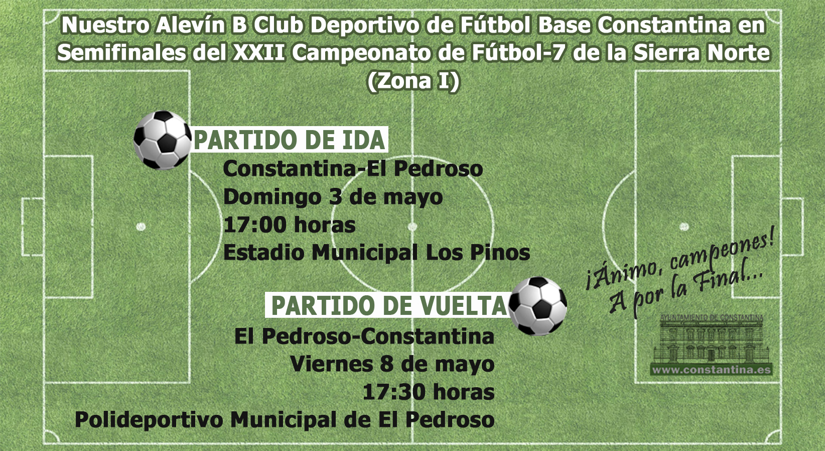 VAMOS AANIMARLOS. ¡NUESTROS CHAVALES NECESITAN EL APOYO DE LA AFICIÓN DE CONSTANTINA PARA LLEGAR A LA FINAL!