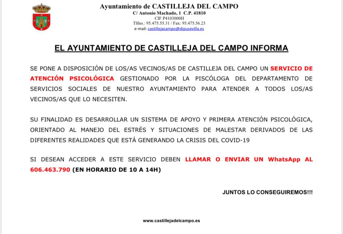 EL AYUNTAMIENTO DE CASTILLEJA DEL CAMPO INFORMA