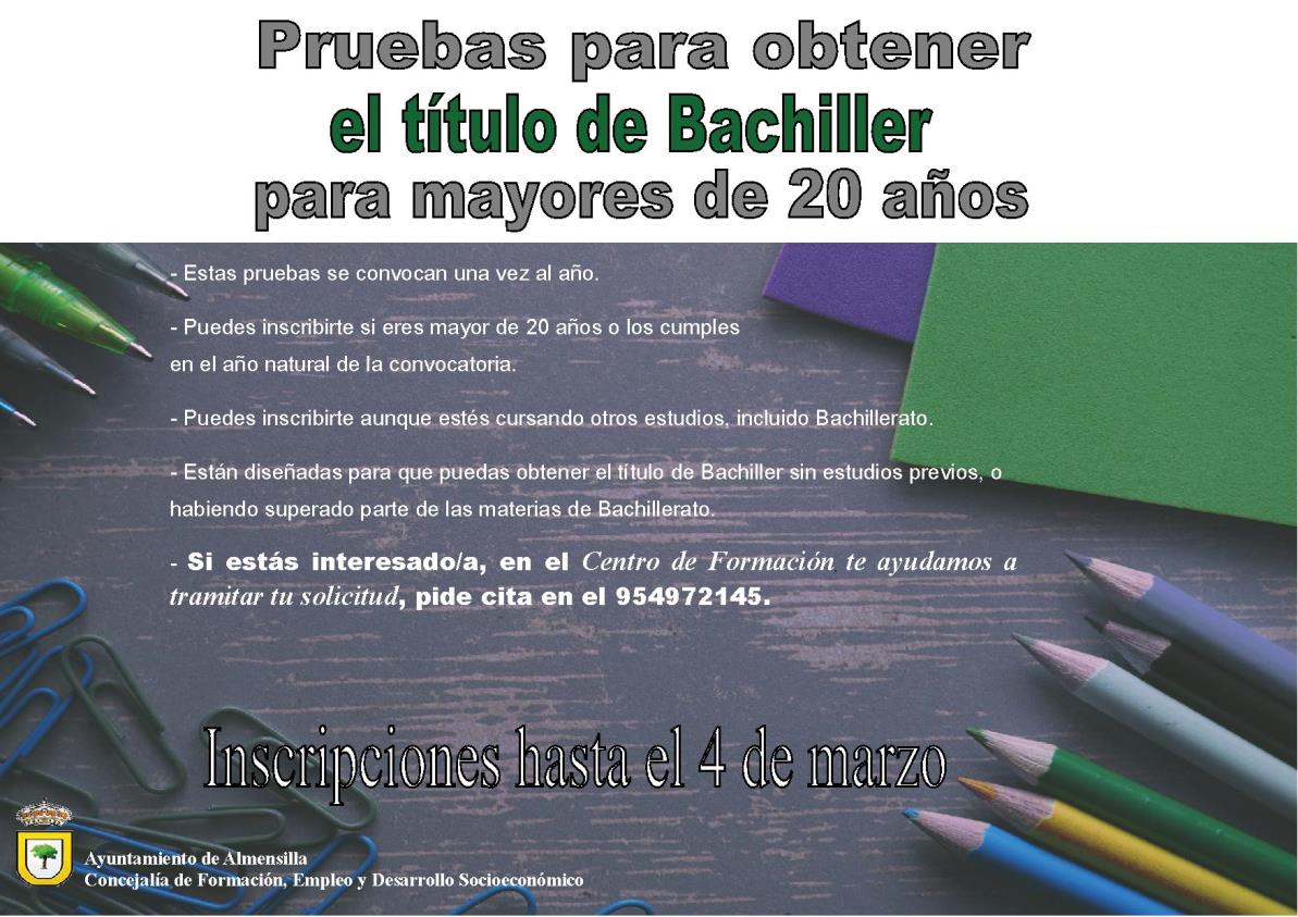 La Consejería de Educación y Deporte convoca para este año 2019 las pruebas para la obtención del título de Bachiller para personas mayores de veinte años.