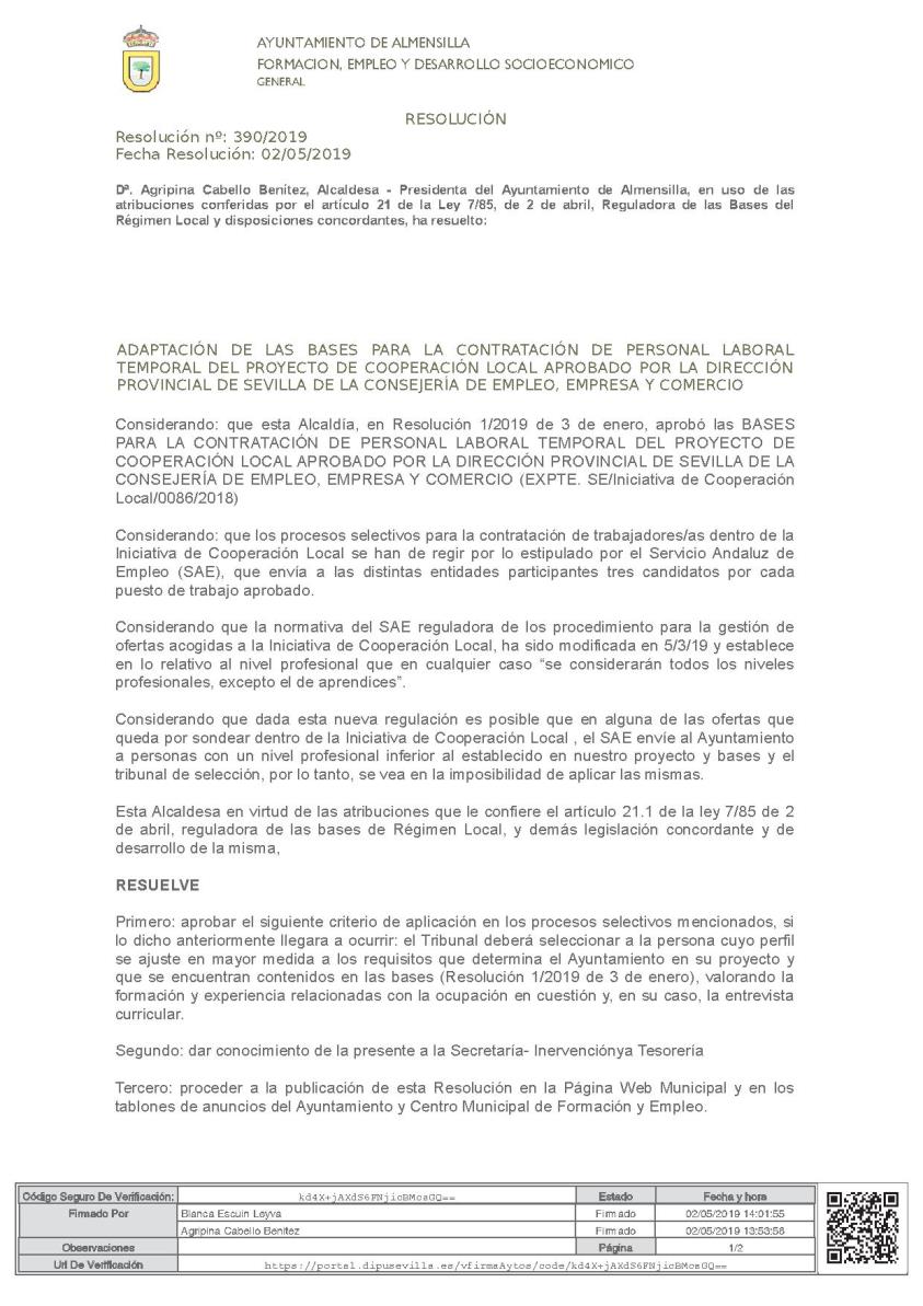 Enlace a la Resolución nº 390/2019. Imagen Ubicación Categoría noticia Formacion y Empleo Mostrar en el carrusel de la sección No Fecha Lun, 06/05/2019 - 10:38 Más información http://www.almensilla.es/es/actualidad/noticias/Adaptacion-de-las-Bases-para-la…