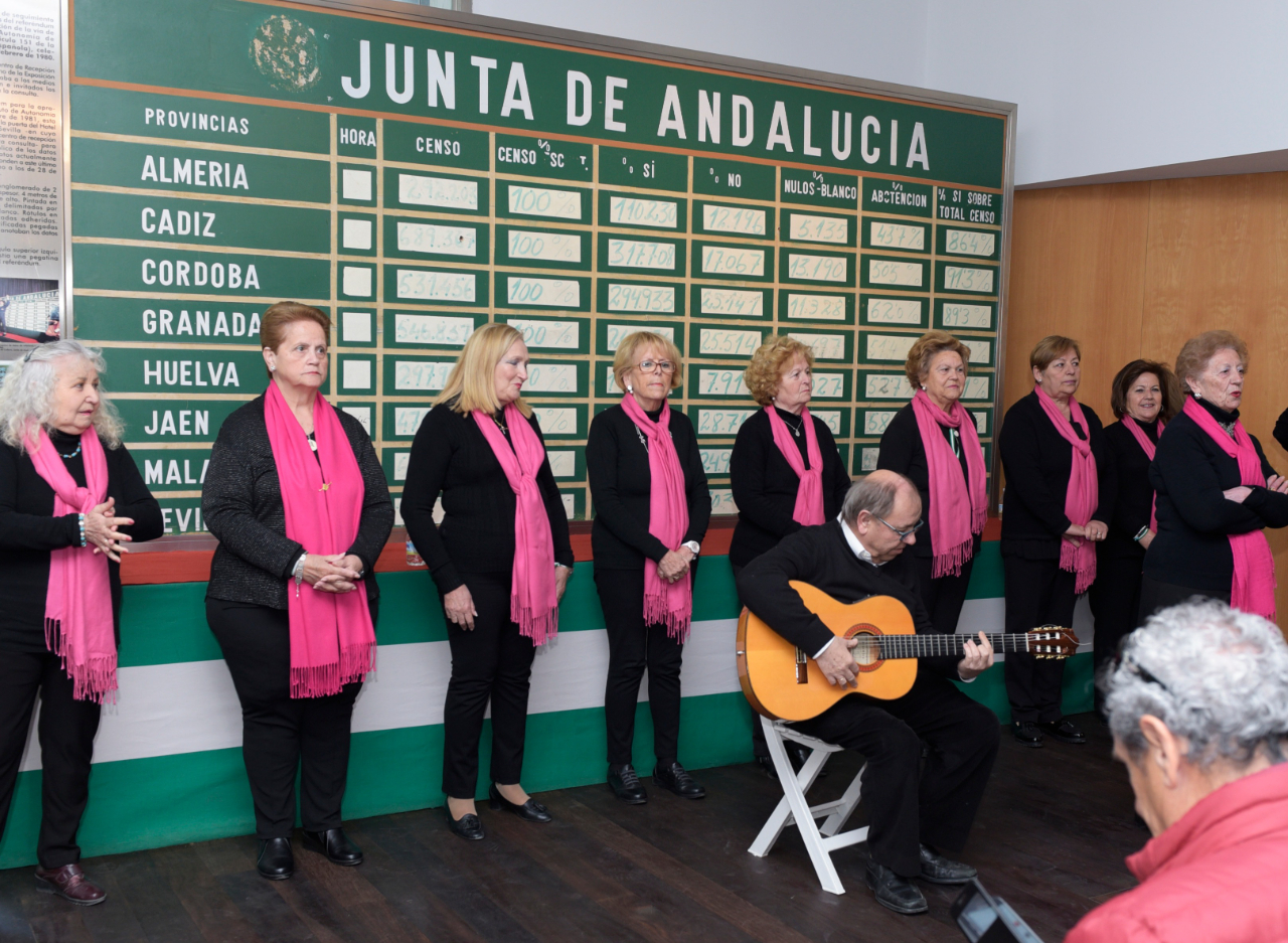 Durante dicho acto, la alcaldesa de Cantillana, Angelines García, recalcó el orgullo de nuestro pueblo de ser la cuna del Himno de Andalucía, ya que Blas Infante se inspiró en Santo Dios, el canto entonado por los campesinos de Cantillana, para componer el himno andaluz, himno que, también, un año más, la Asociación Cultural de Mujeres Coro Azahar de Cantillana interpretó ayer en Coria del Río, en el Museo de la Autonomía de Andalucía, junto al Santo Dios.