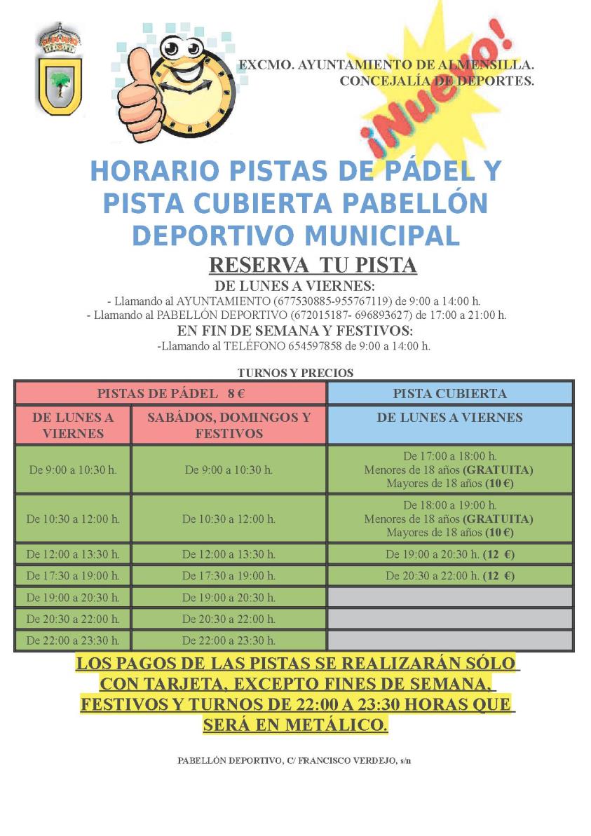 La Concejalía de Deportes del Ayuntamiento de Almensilla informa a la población de que ya se puede realizar el servicio de reserva de las Pistas de Pádel con total normalidad una vez solventada la rotura del cristal de una de sus pistas.