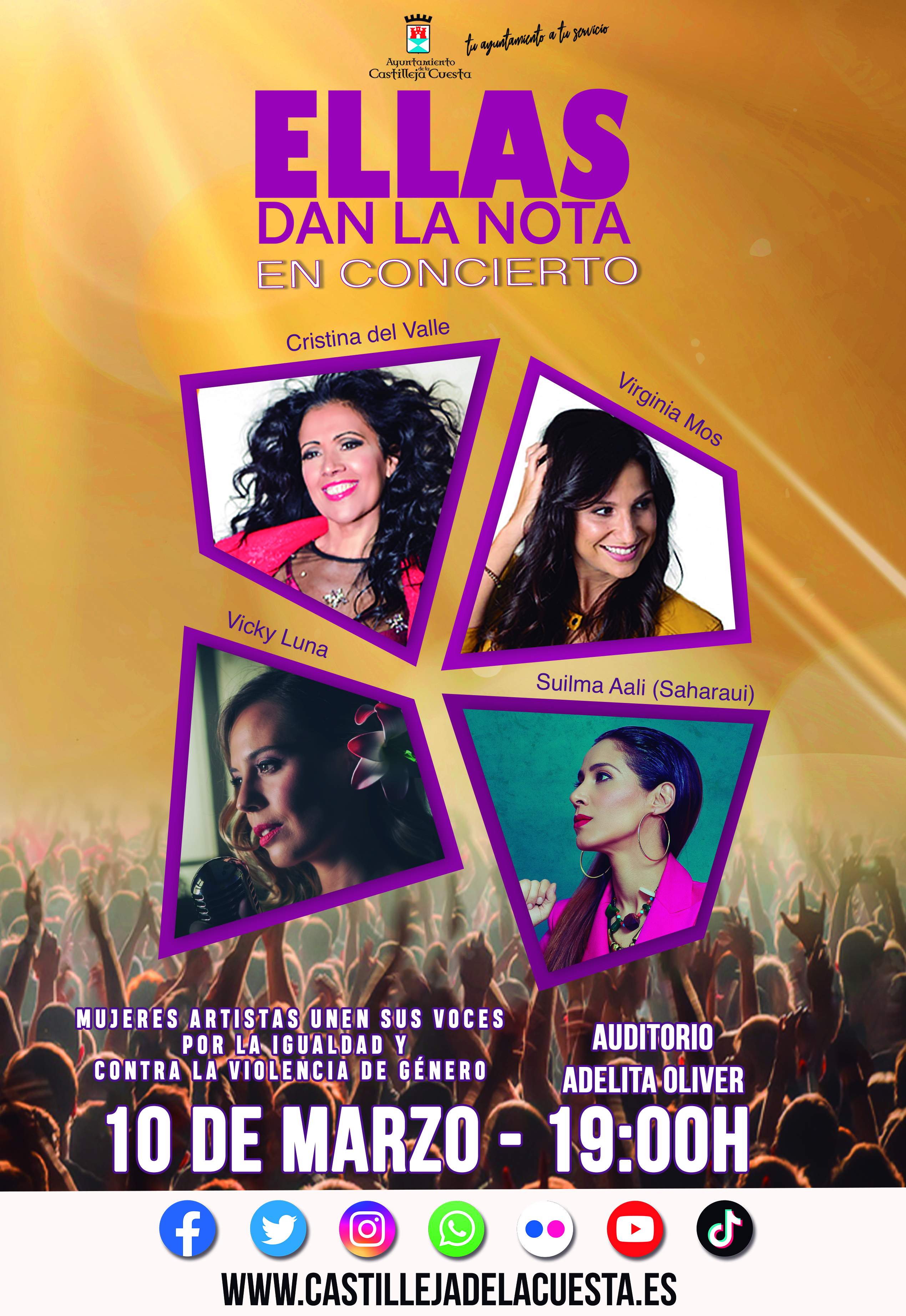 Fecha inicio Vie, 10/03/2023 - 14:45 Fecha fin Vie, 10/03/2023 - 14:45 Imágenes Ubicación Categoría evento Ciudadanía Mostrar en el carrusel de la sección No Más información http://www.castillejadelacuesta.es/es/actualidad/eventos/Concierto-Ellas-dan-la…
