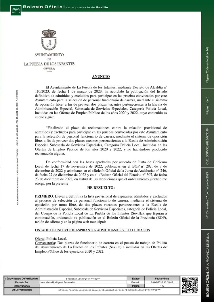 Imagen Imágenes Ubicación Categoría noticia Empleo Mostrar en el carrusel de la sección No Fecha Mar, 07/03/2023 - 11:46 Más información http://www.lapuebladelosinfantes.es/es/actualidad/noticias/Listado-definitivo-d…