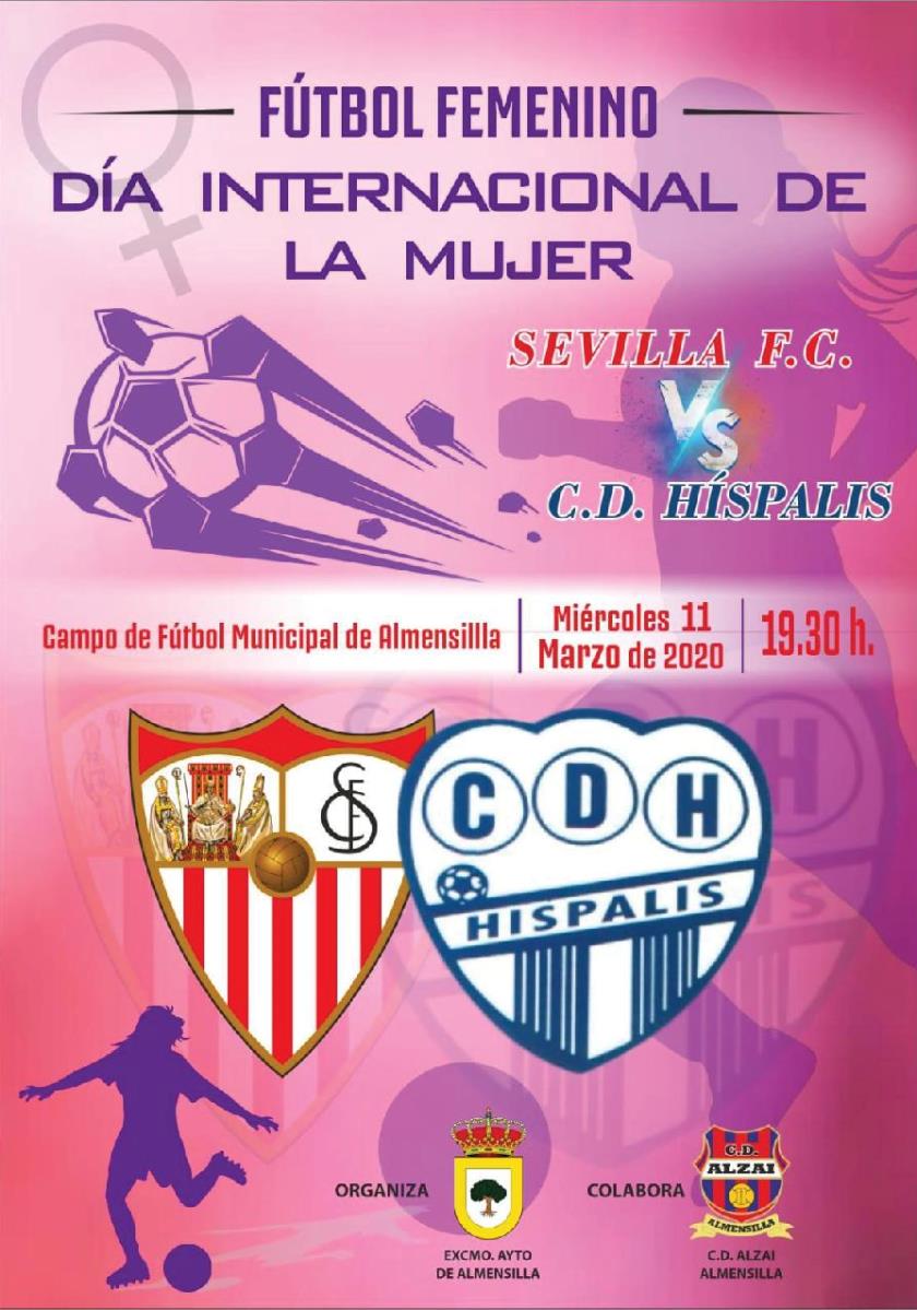 La Concejalía de Deportes organiza con la colaboración del C.D. Alzai un encuentro amistoso de Fútbol Femenino entre el Sevilla F.C y el C.D. Hispalis el próximo 11 de marzo a las 19:30 en el Campo de Fútbol Municipal , en conmemoración del 'Día Internacional de la Mujer'.