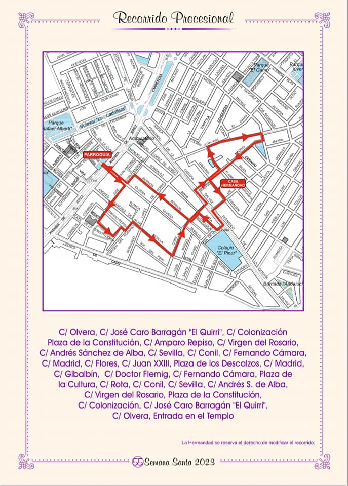Salida procesional desde la Parroquia de San José a las 18:30 horas.