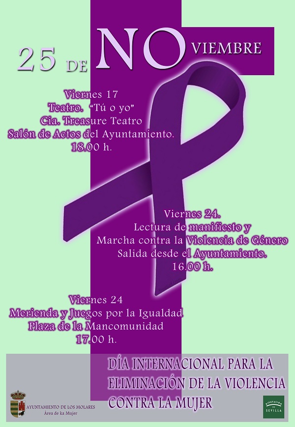 Imagen Ubicación Categoría noticia Igualdad Mostrar en el carrusel de la sección No Fecha Mar, 07/11/2017 - 08:41 Más información http://www.losmolares.es/es/actualidad/noticias/25-DE-NOVIEMBRE-DIA-INTERNACION…