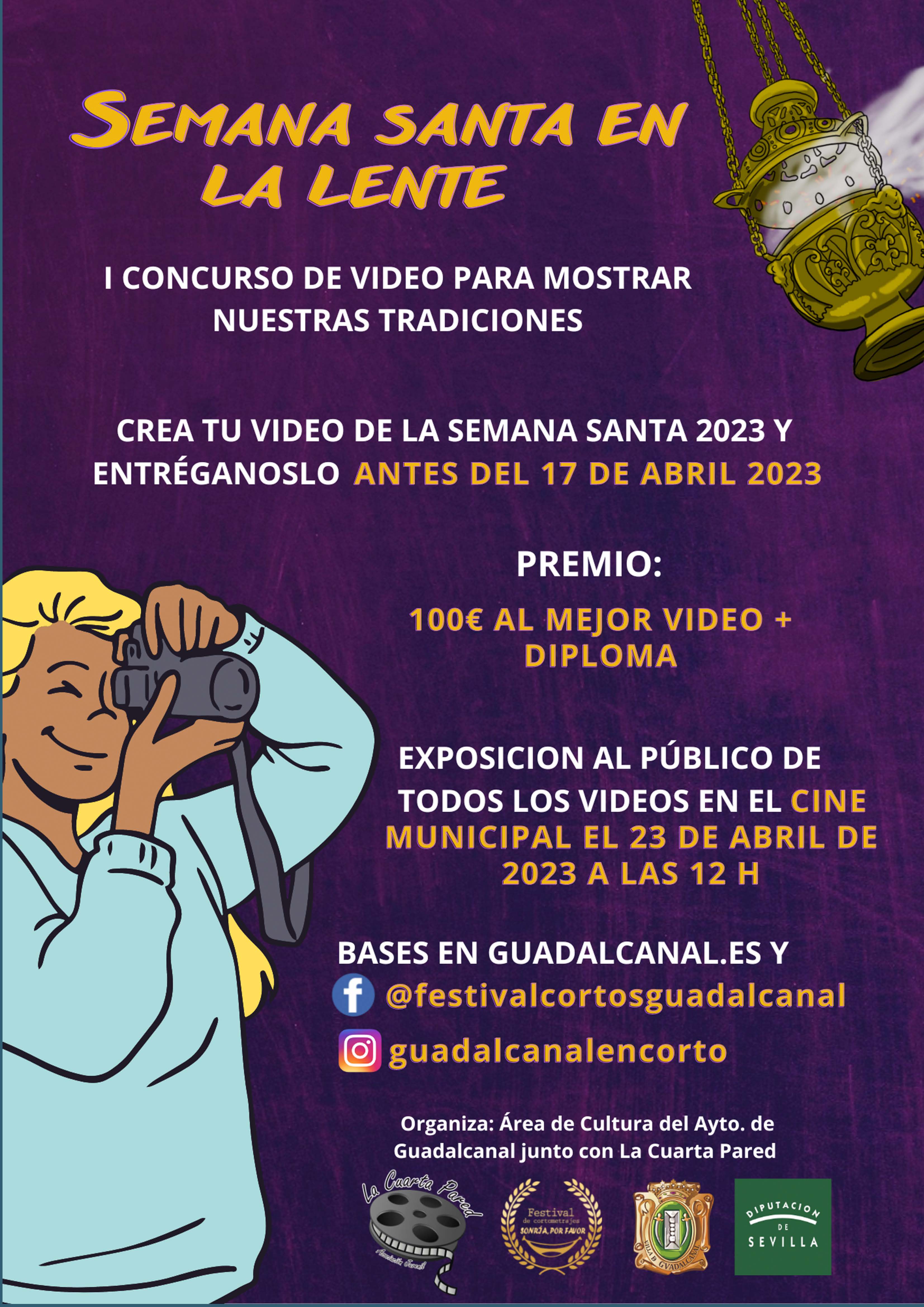 El Ayuntamiento de Guadalcanal junto con los voluntarios organizadores del IV Festival de Cortometrajes GUADALCANAL EN CORTO 'Sonría, por favor' organizan el I Concurso de vídeo Semana Santa de Guadalcanal 2023.