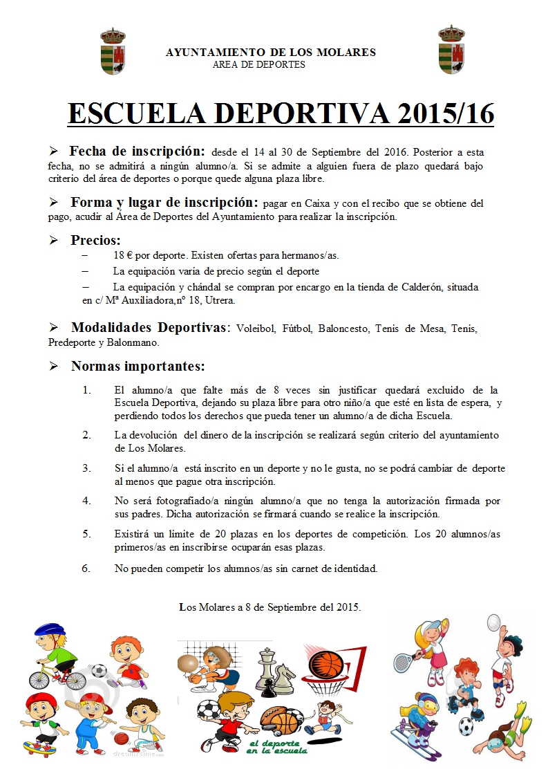 Imagen Ubicación Categoría noticia Deporte Mostrar en el carrusel de la sección No Fecha Mié, 09/09/2015 - 12:51 Más información http://www.losmolares.es/es/actualidad/noticias/CARTEL-INFORMATIVO-DE-LA-ESCUEL…