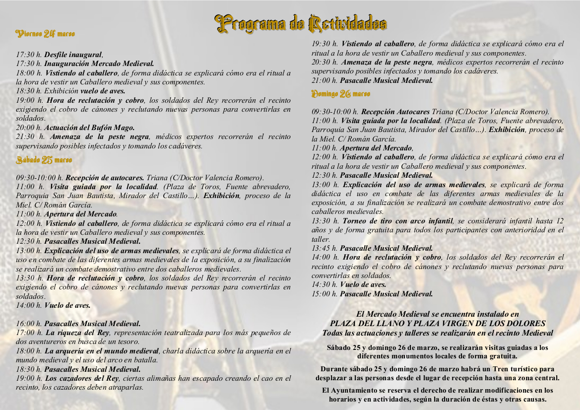 El Ayuntamiento del Castillo de las Guardas se reserva el derecho de realizar modificaciones en los horarios y en actividades, según la duración de éstas y otras causas.