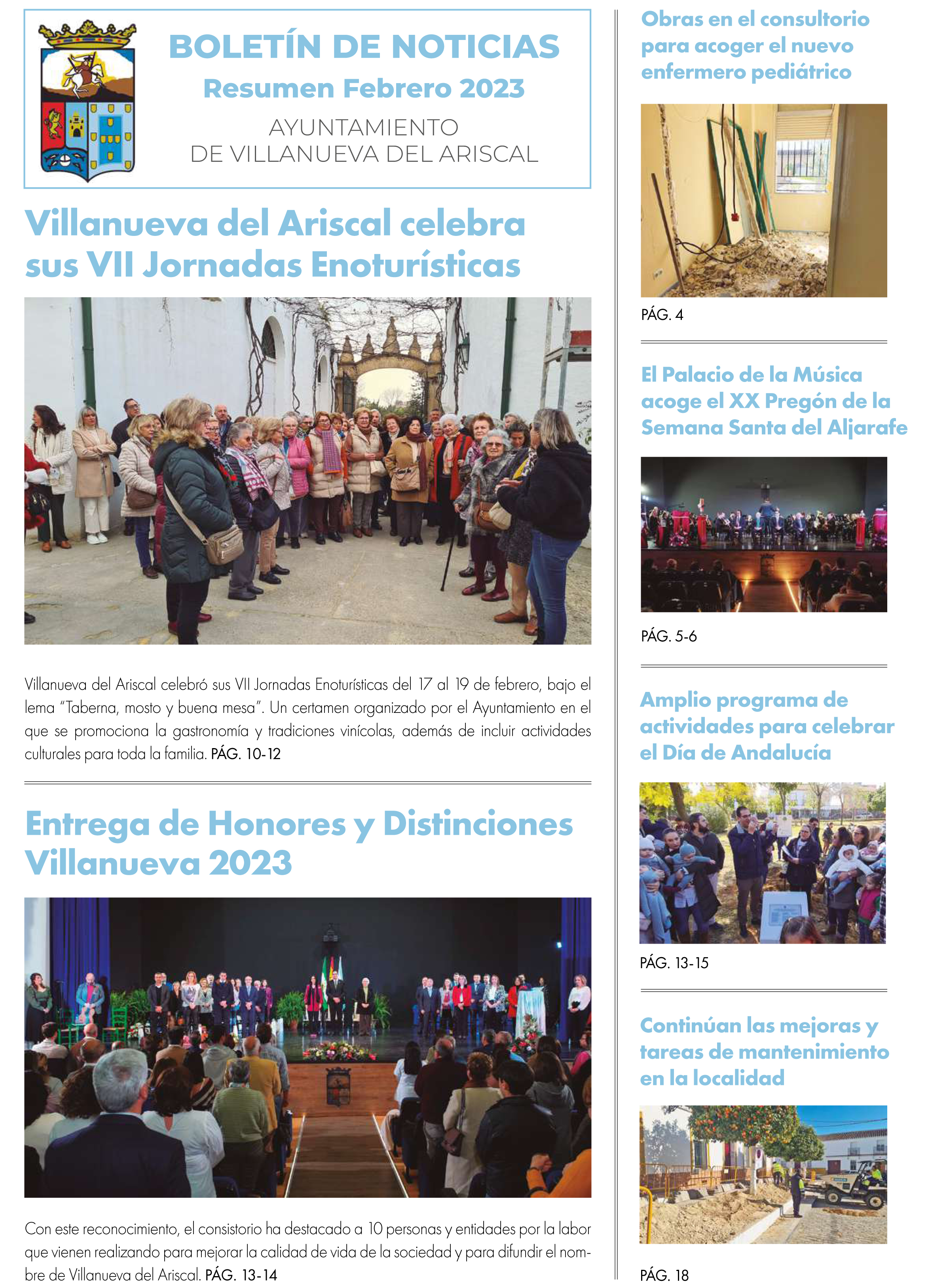 Aquí os dejamos este boletín informativo correspondiente a febrero de 2023. Seguimos trabajanado con ilusión en nuevos proyectos y para hacer de #VillanuevaDelAriscal #ElPuebloQueTúMereces