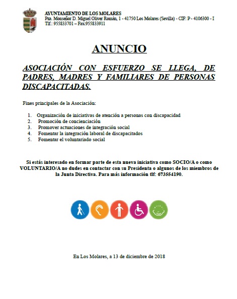 Imagen Ubicación Categoría noticia Educación Mostrar en el carrusel de la sección No Fecha Vie, 14/12/2018 - 11:56 Más información http://www.losmolares.es/es/actualidad/noticias/ASOCIACION-CON-ESFUERZO-SE-LLEG…
