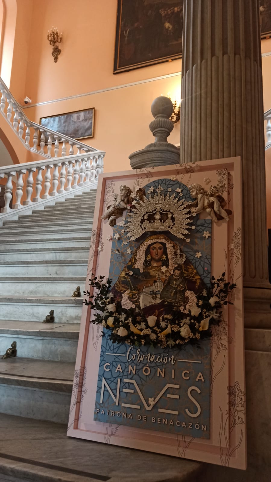 El Ayuntamiento de Benacazón informa que el Cartel de la Coronación Canónica de la Patrona de Benacazón la Virgen de las Nieves, realizado por el artista local Rafael LAureano Martínez González, forma parte de la Exposición de la Asociación Gremial de ARte Sacro de Sevilla "SEVILLA FECIT 2023", inaugurada el pasado 17 de marzo en el Ayuntamiento de la ciudad y que pueden visitar hasta el 9 de abril.