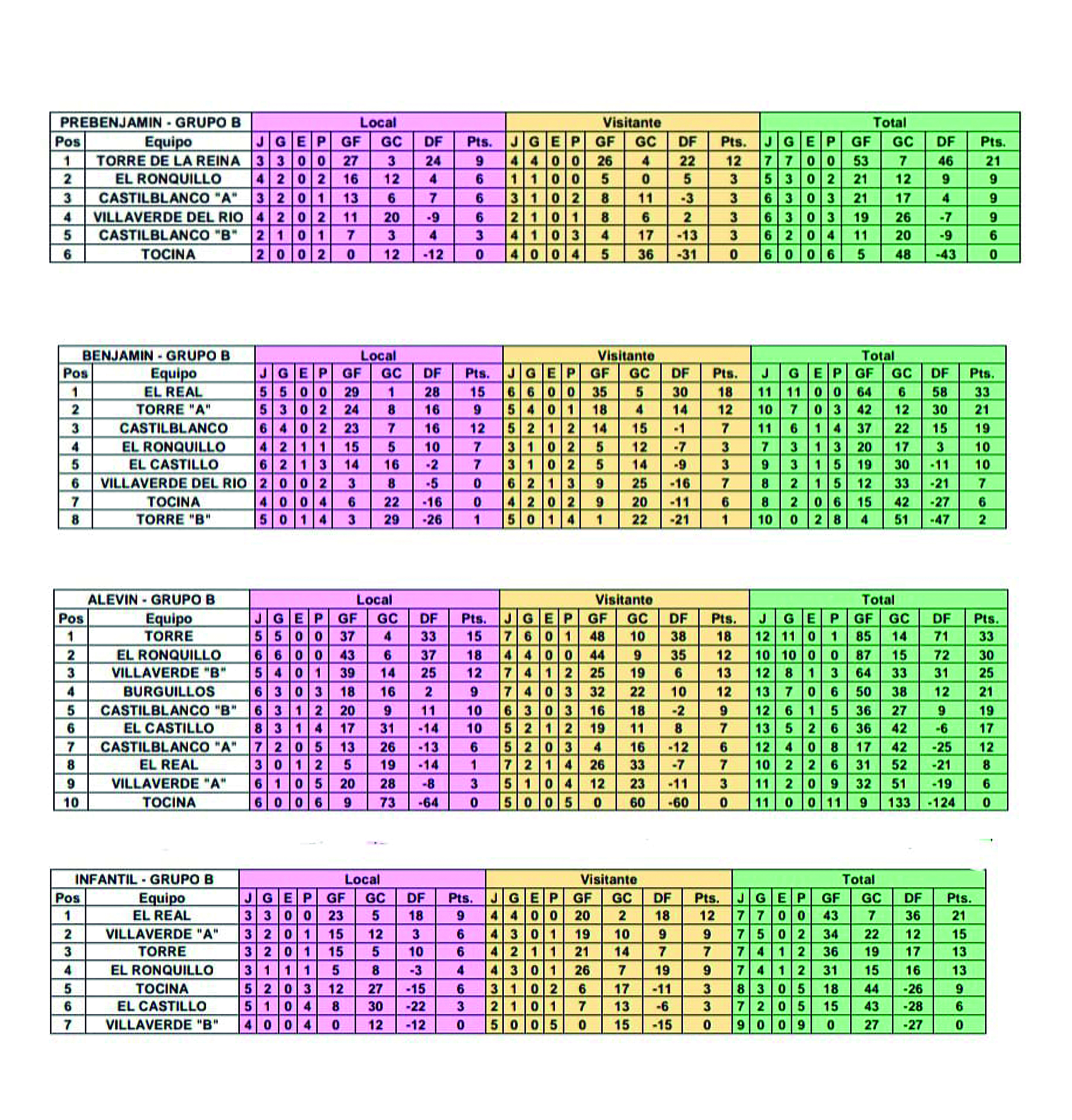 Clasificaciones actualizadas de los equipos de la Escuela Municipal de Fútbol 7