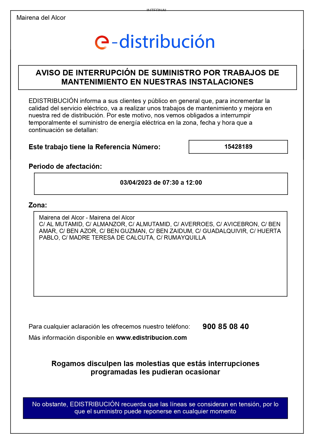Más información sobre los trabajos programados en www.edistribucion.com