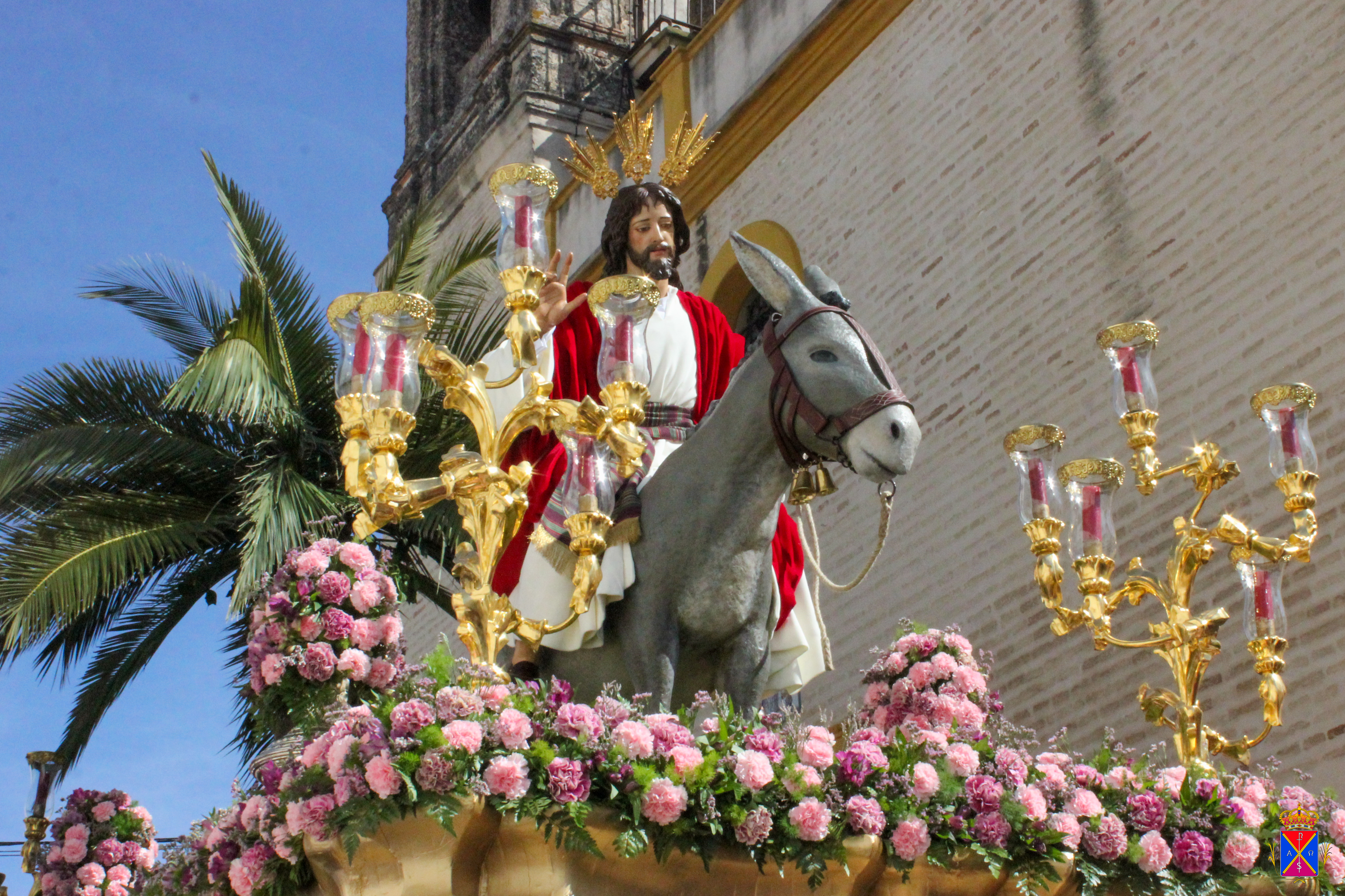 Comandado por Manuel Díaz 'Jimmy', el paso de la Borriquita realizará el siguiente itinerario: Plaza del Santísimo Cristo del Perdón, Santa María, Palmillas, Larga, Palmar, Comercio, Doña Manuela Álvarez, Larga, Manuel García Soriano, Plaza del Santísimo Cristo del Perdón y entrada (14:30 horas).