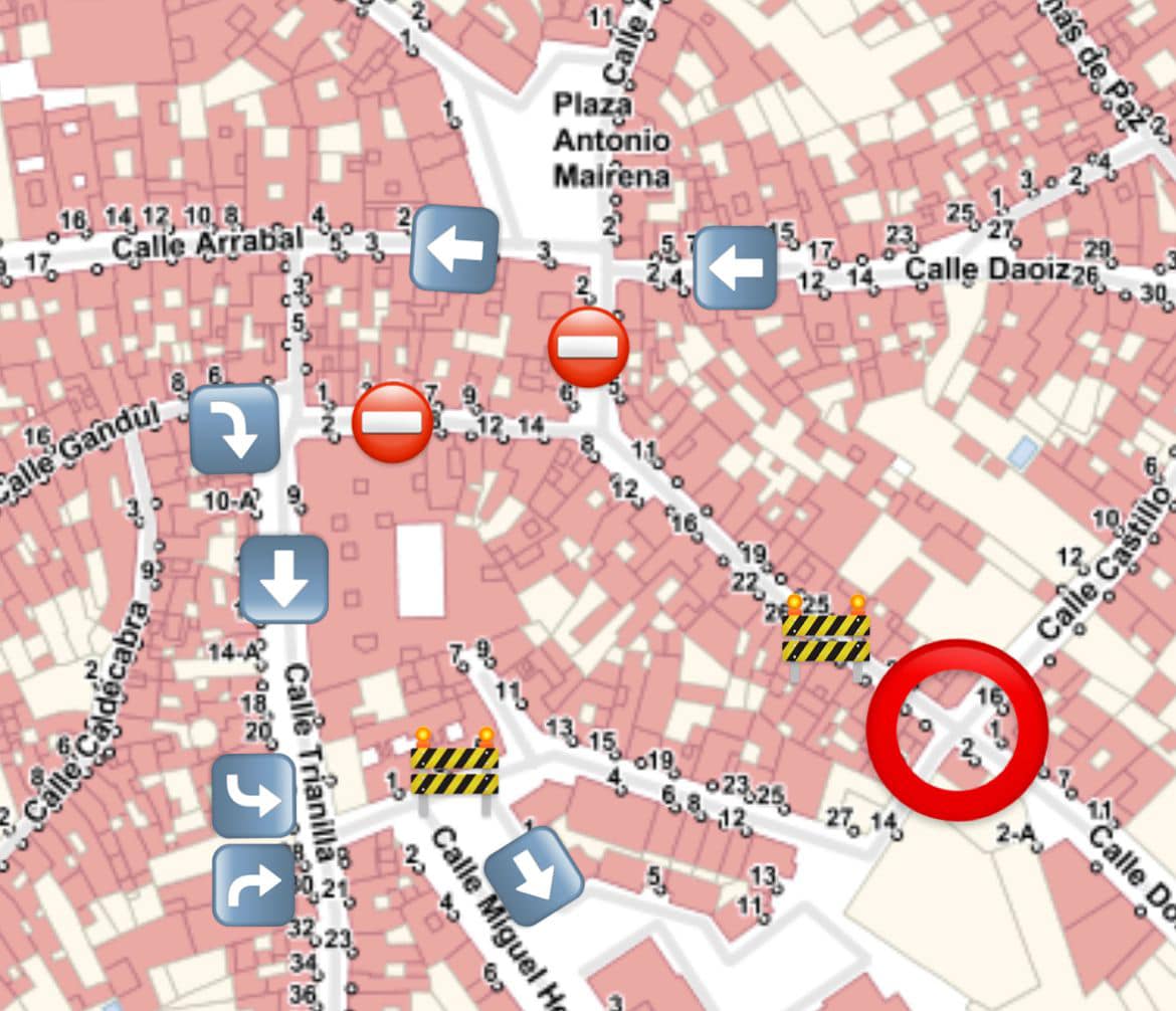 El tráfico hacia calle Trianilla se desviará por calle Miguel Hernández, accediendo a la zona de Fuente Gorda por calle Gandul.
