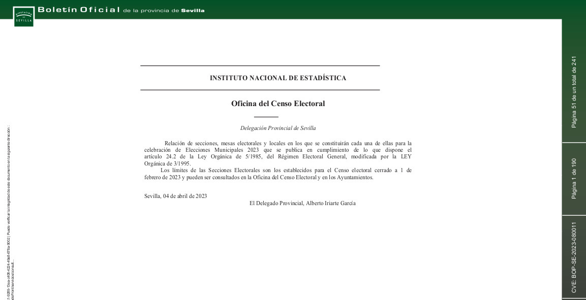 El Ayuntamiento de Benacazón informa sobre la relación de secciones, mesas electorales y locales, que se establecerán en el municipio para la celebración de las Elecciones Municipales del próximo 28 de Mayo de 2023, publicada en el BOP Nº 80 del lunes 10 de Abril.
